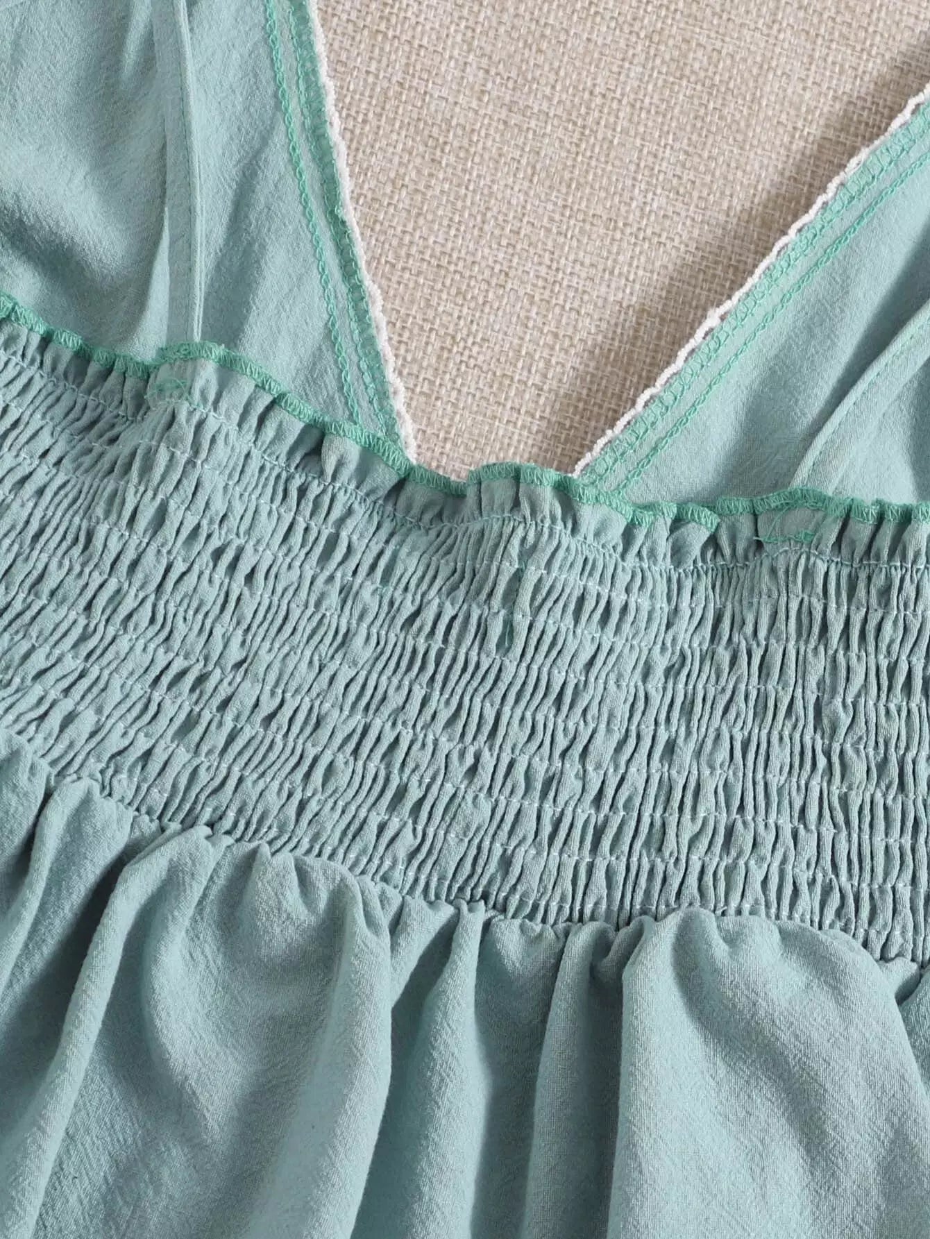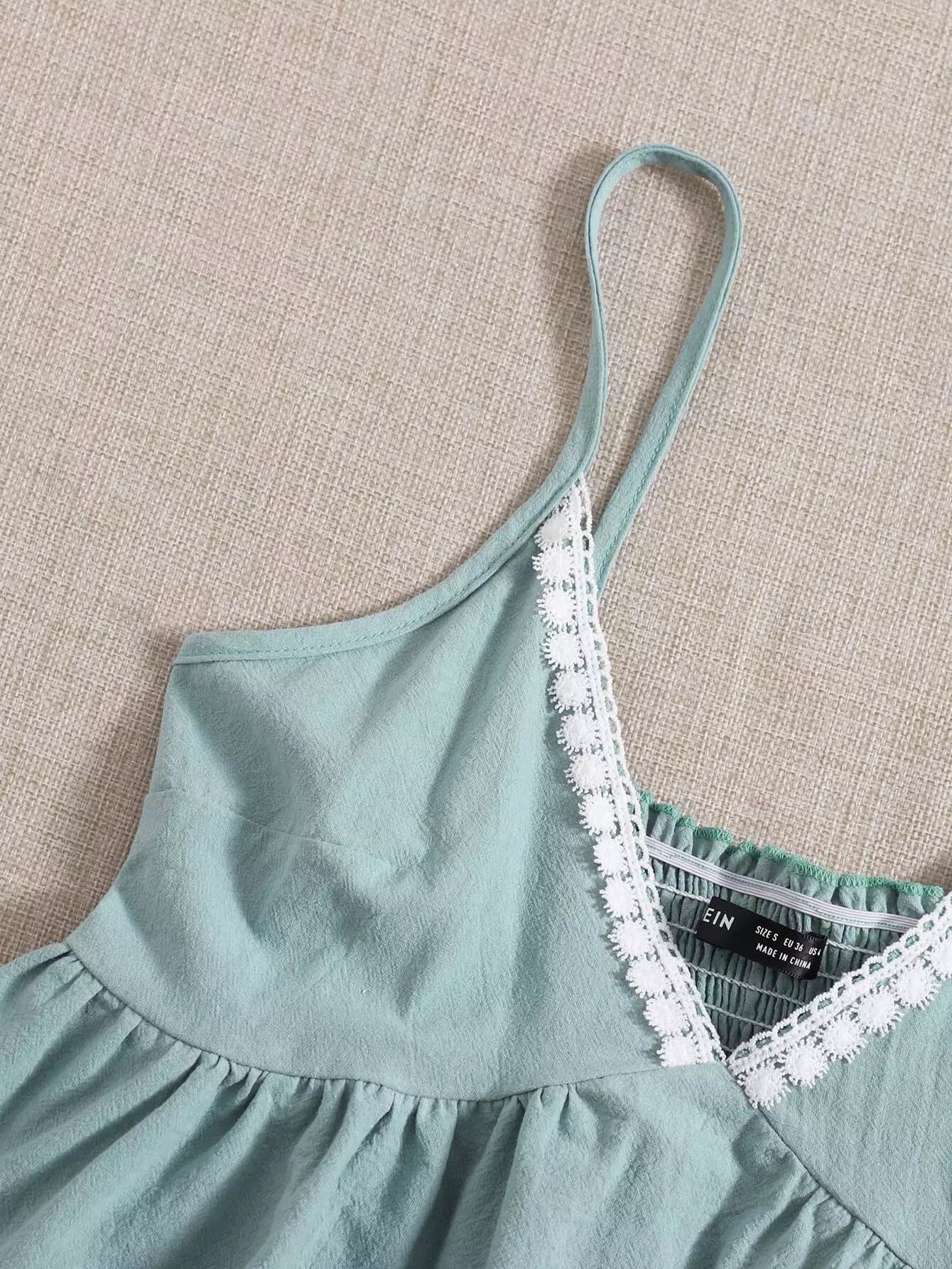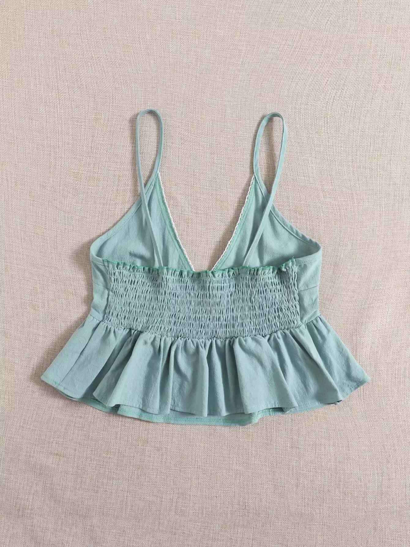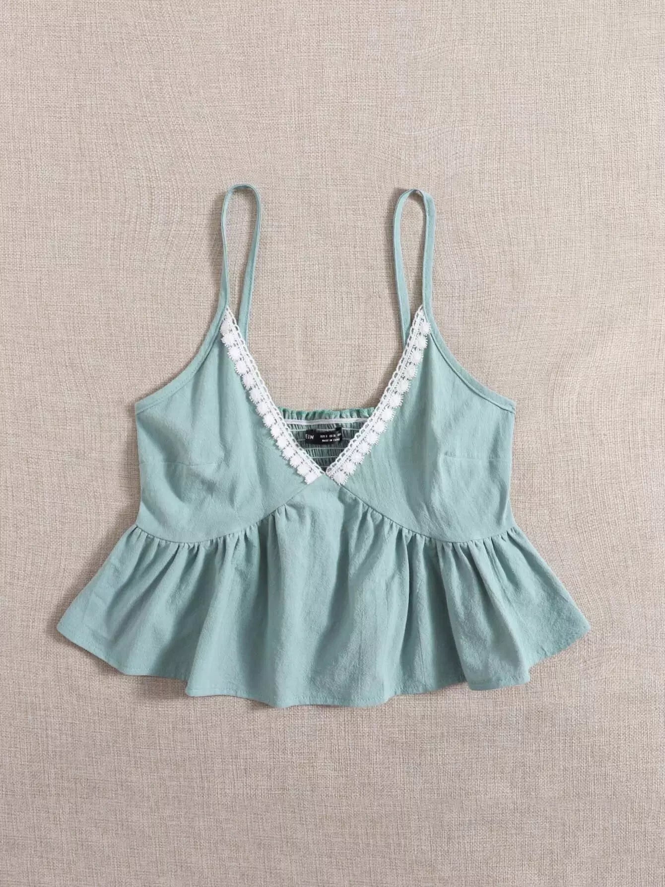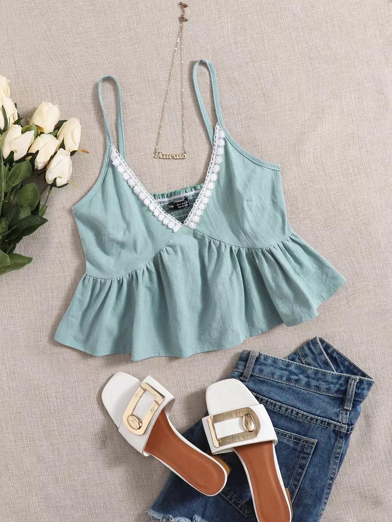 Women - Guipure Lace Trim Ruffle Hem Cami Top