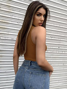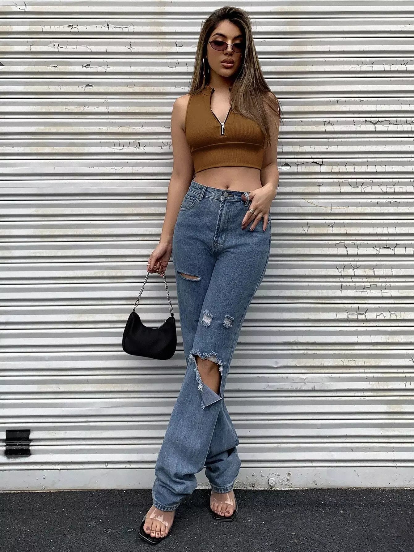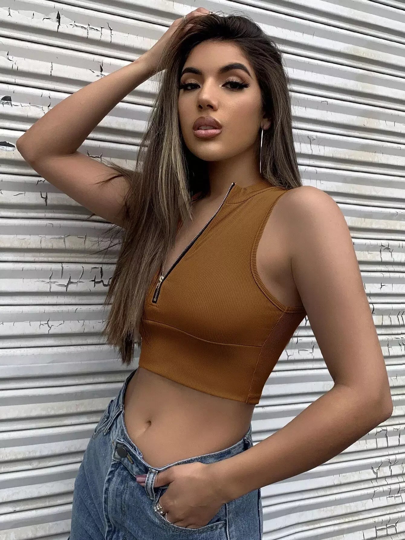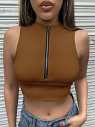 Half Zip Rib-knit Crop Top
