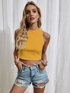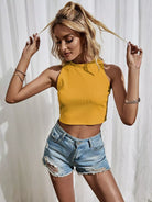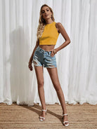 Lace Detail Split Tie Back Rib-knit Crop Tank Top