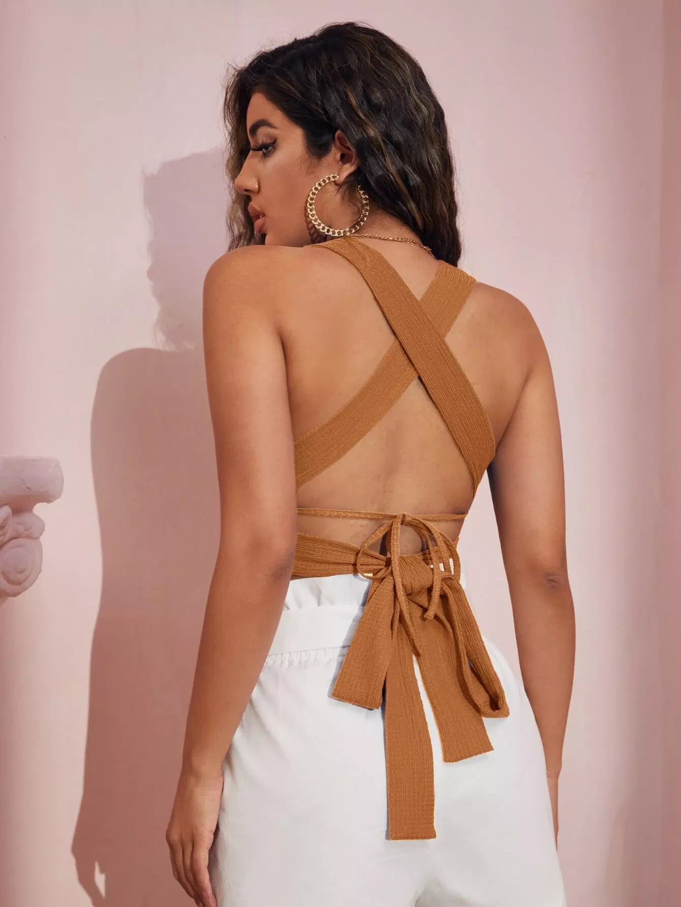 Lace Up Back Halter Top