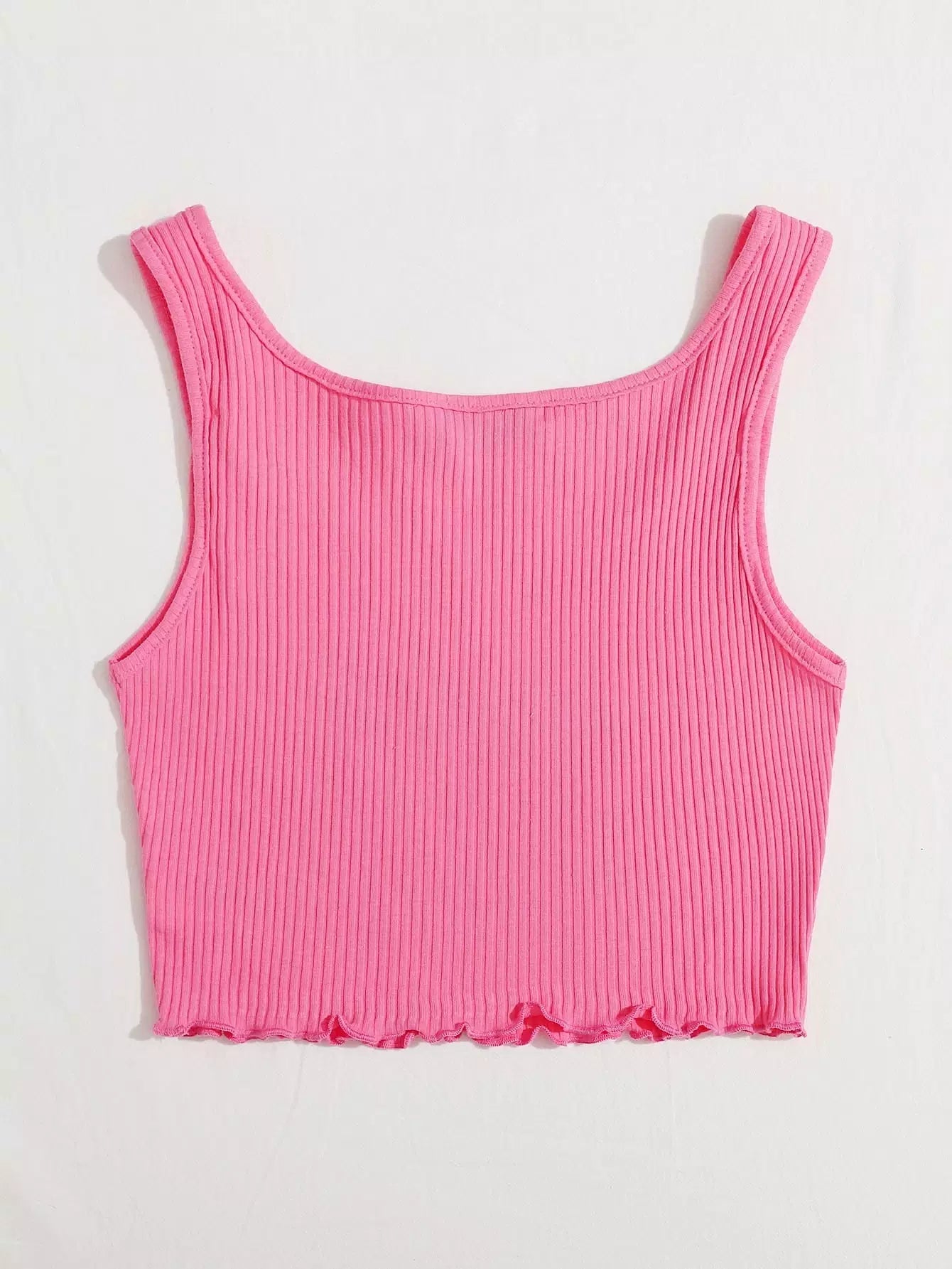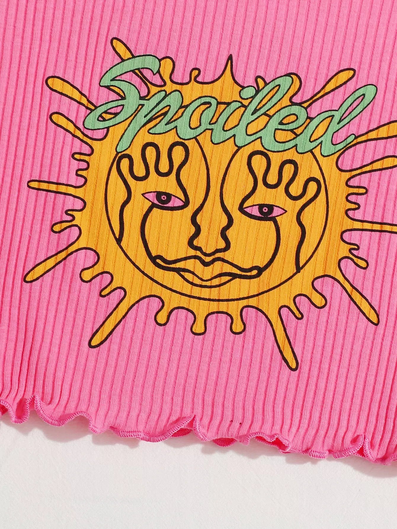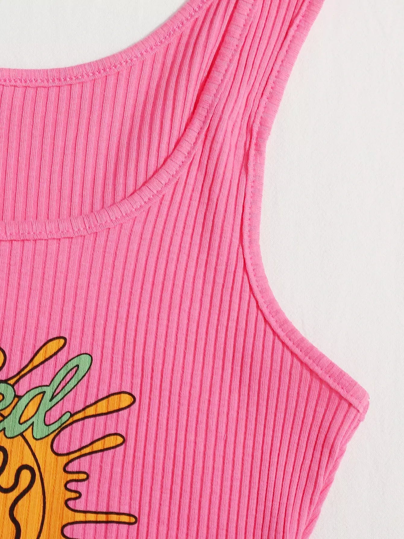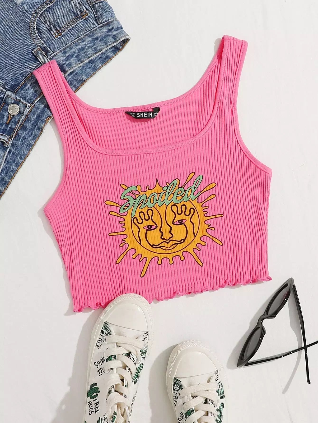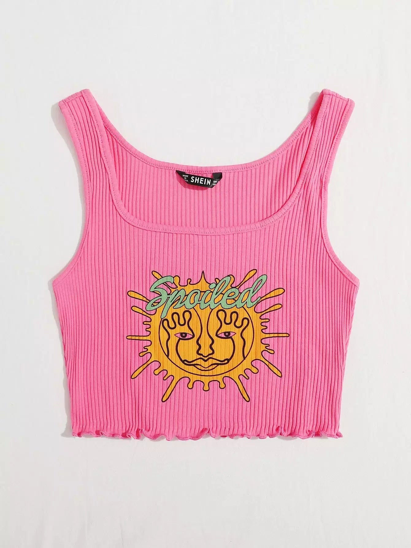 Lettuce Trim Rib-knit Graphic Print Tank Top