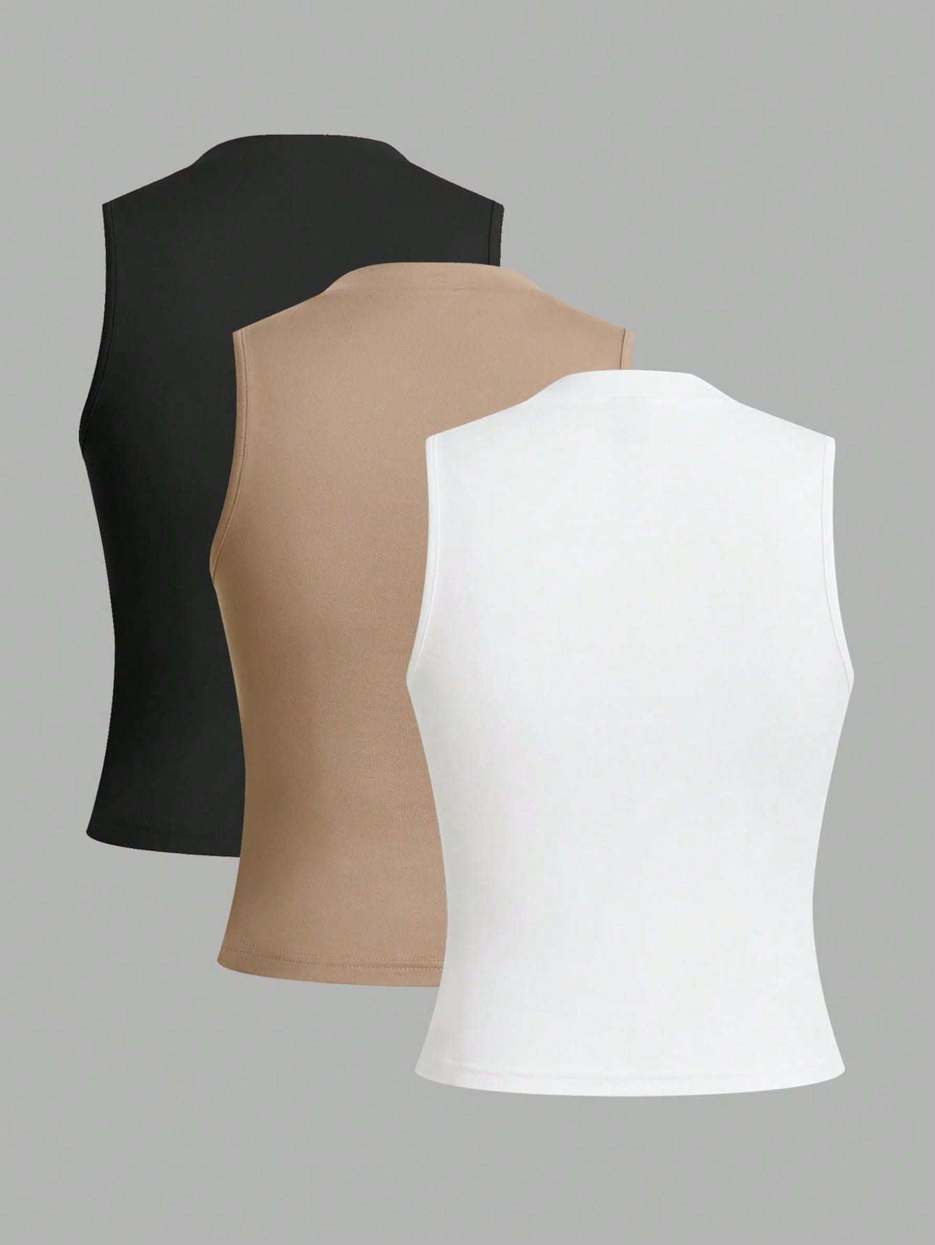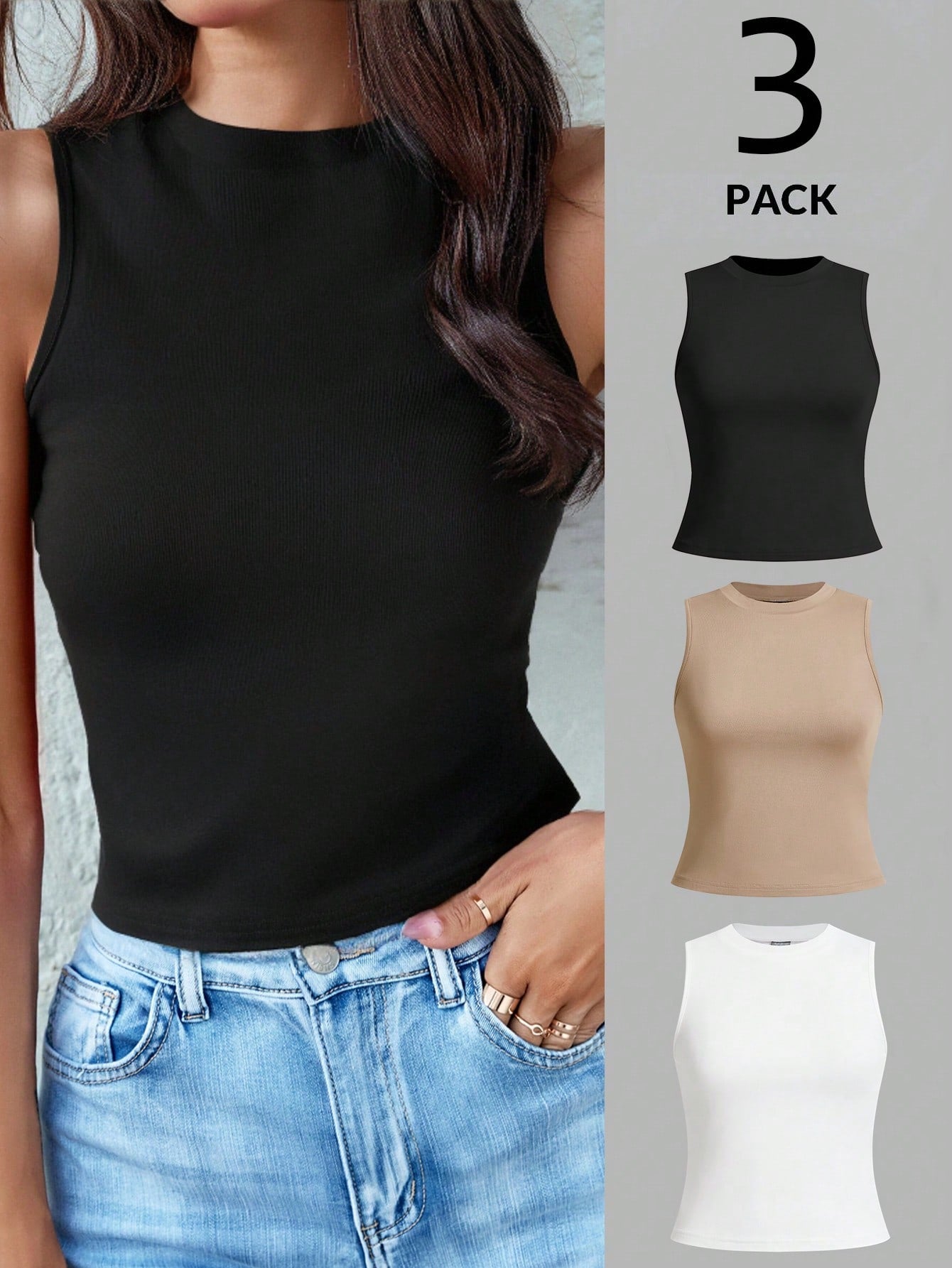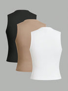 LUNE 3pcs Women Crew Neck Form-Fitting Camisole Basic Summer Essentials Back To School
