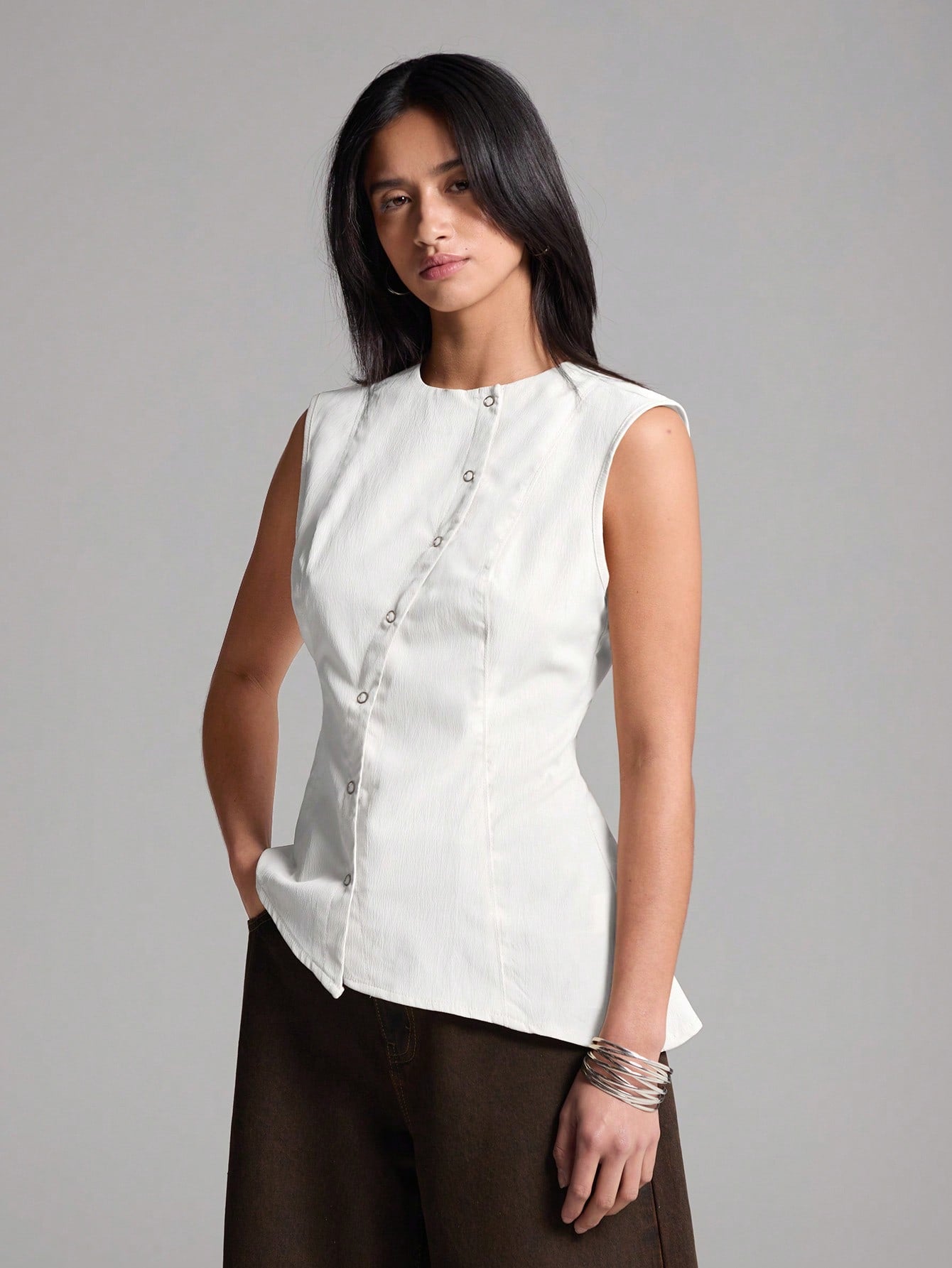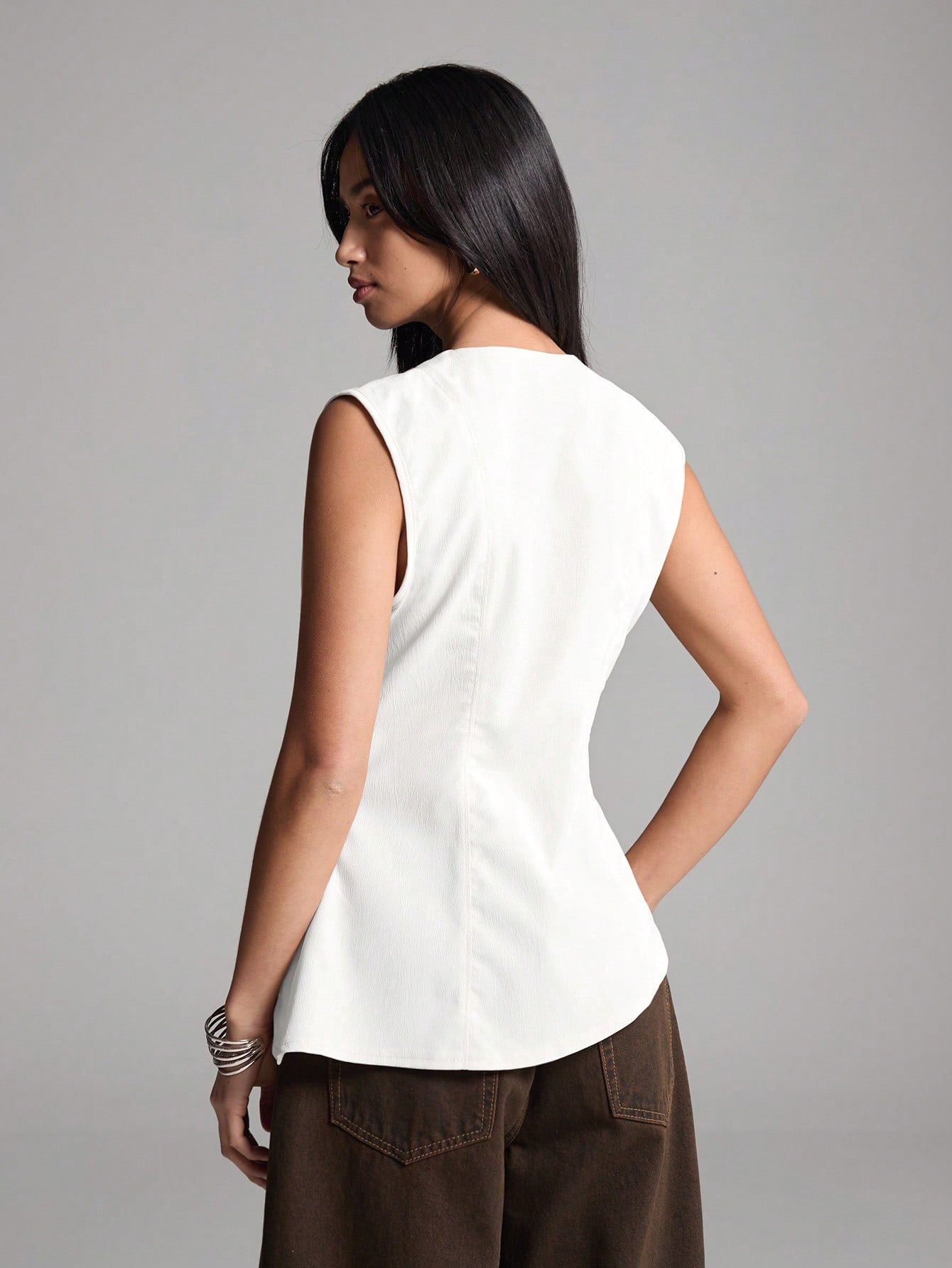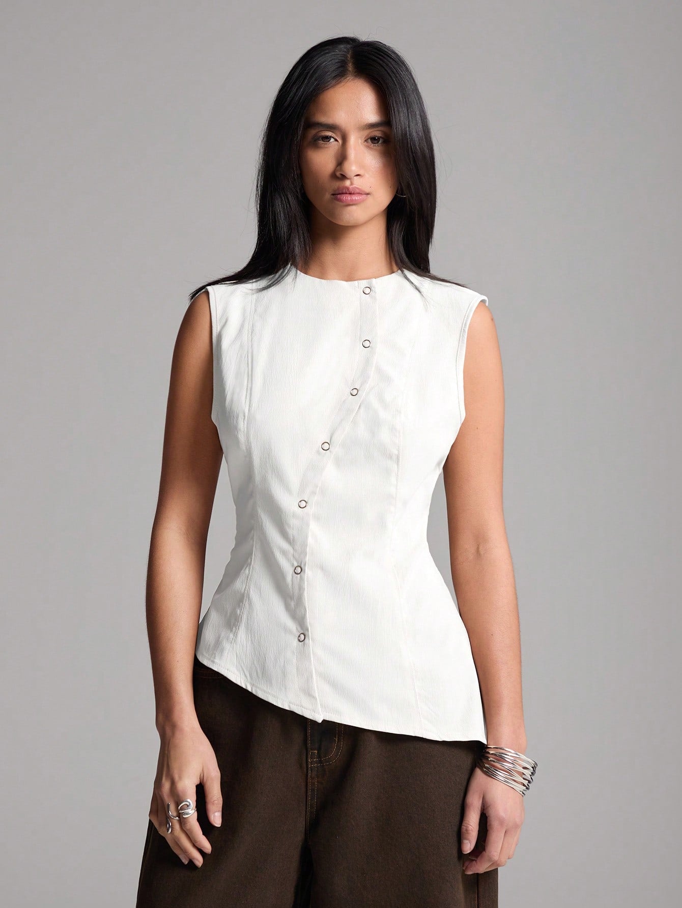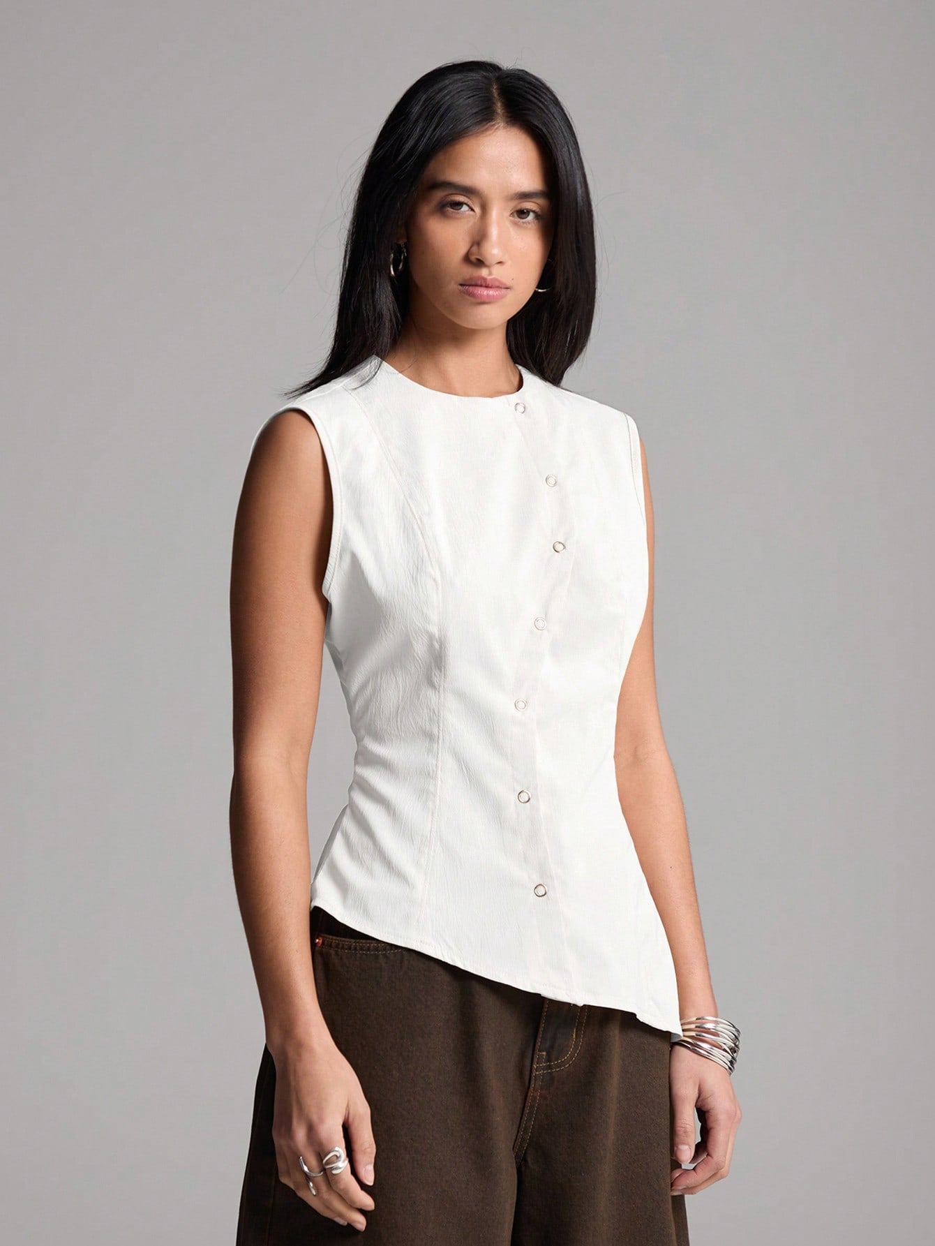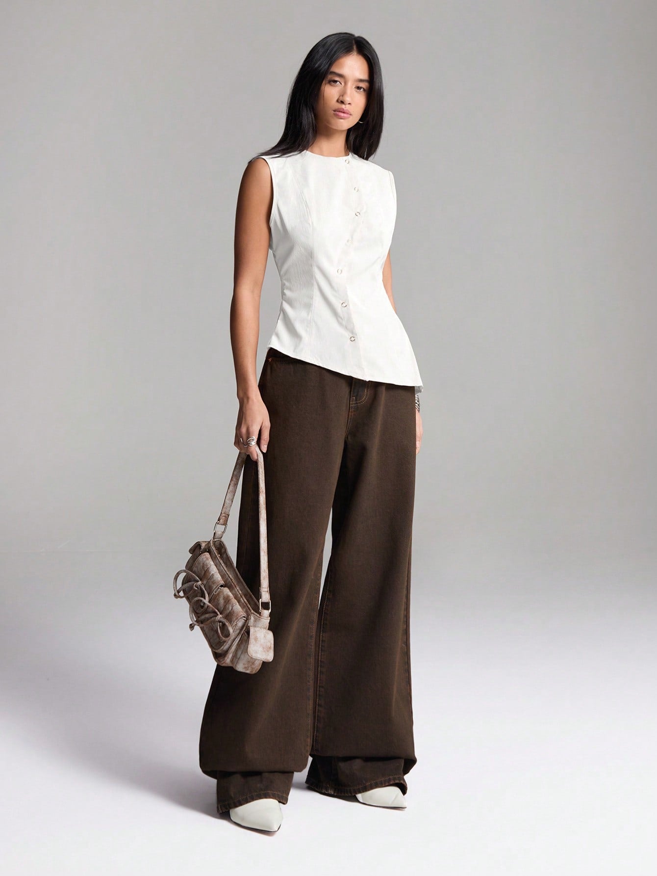 LYSMO 2025 New Arrivel Women's Plain Buttoned Front Sleeveless Casual Crop Top