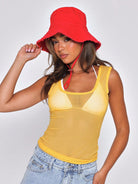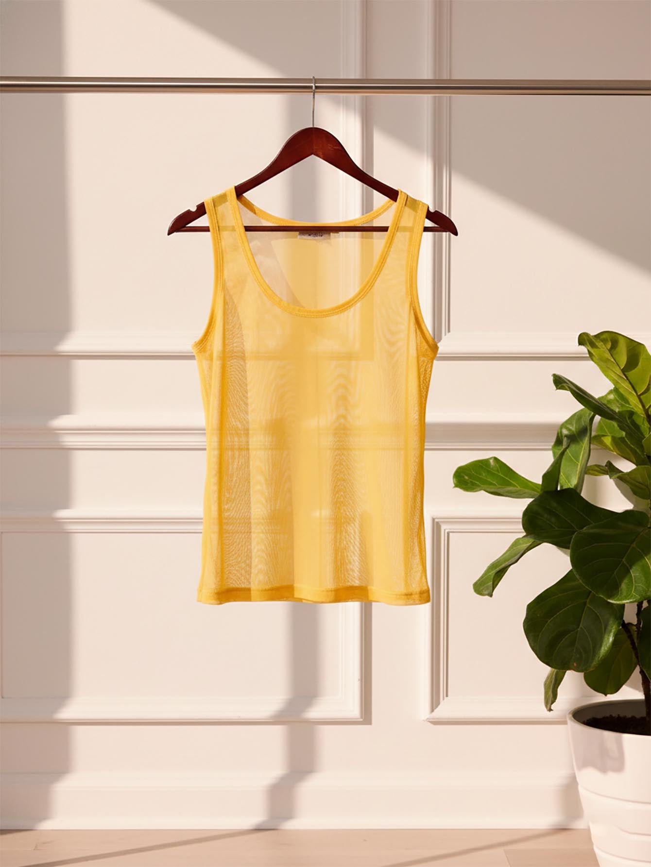 MUSERA Sexy Yellow Mesh Fitted Tank Top Summer Holiday Ibiza Beachwear For Vacation Euro Summer Sheer