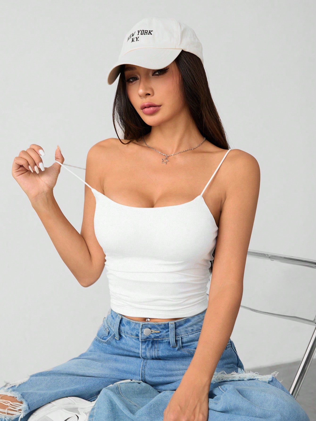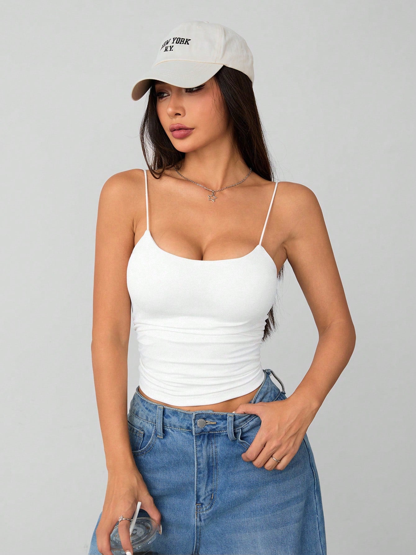 PETITE Women's White Tight Breathable Basic Camisole Women's Tops Braless Camisole Tops