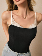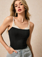 women Poï؟½selle Women's Casual Black Crop Camisole With Contrast Lace Trim And Spaghetti Straps
