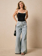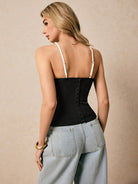Poï؟½selle Women's Casual Black Crop Camisole With Contrast Lace Trim And Spaghetti Straps