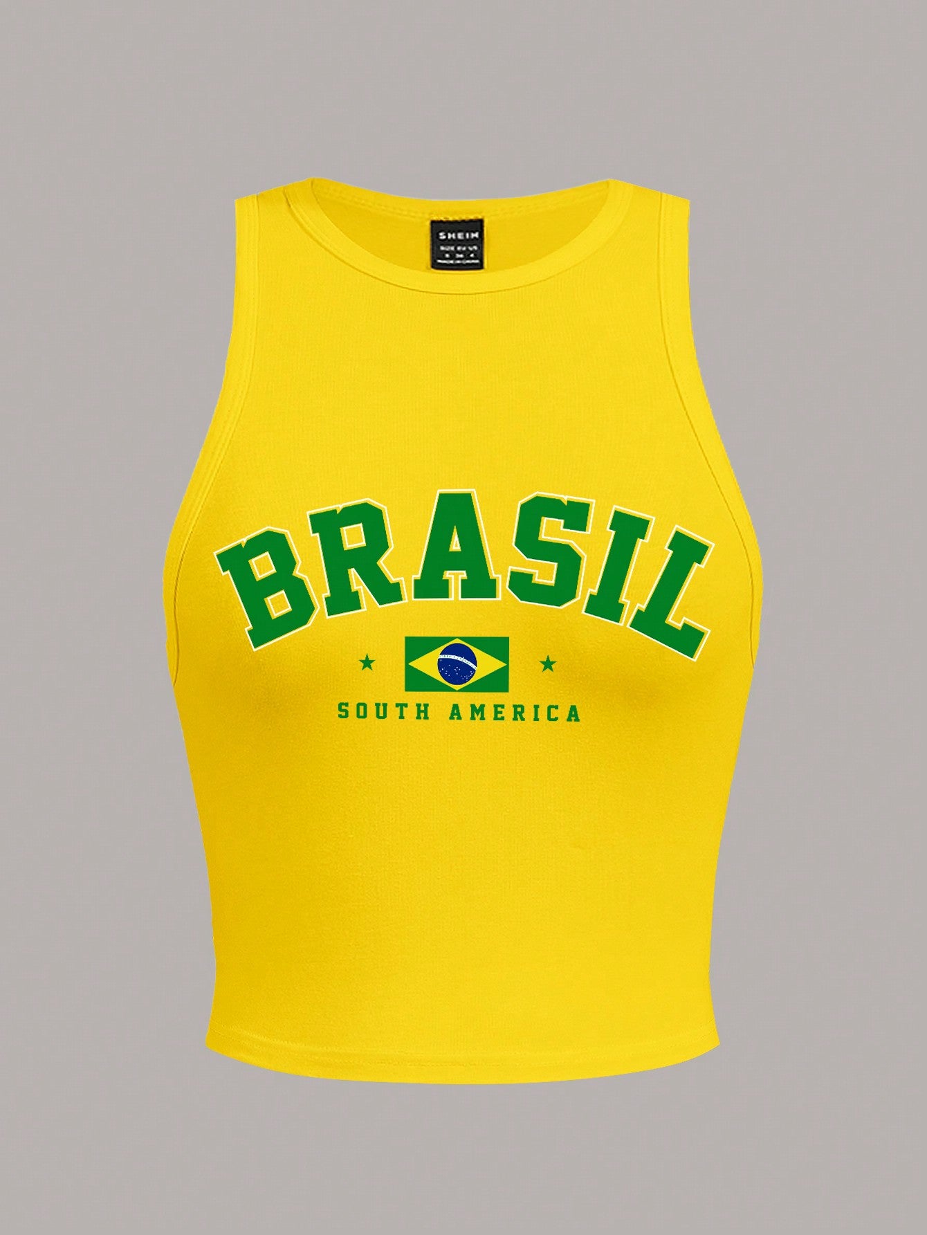 Slaydiva Casual Simple BRASIL Neckline Slim Fit Tank Top For Women, Summer Back To School
