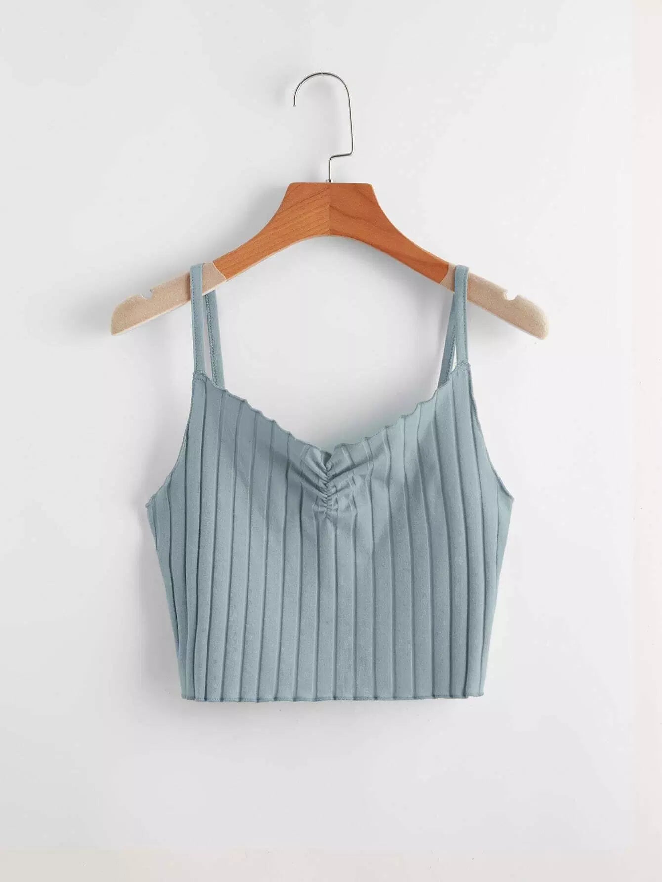 Solid Ruched Ribbed Crop Cami