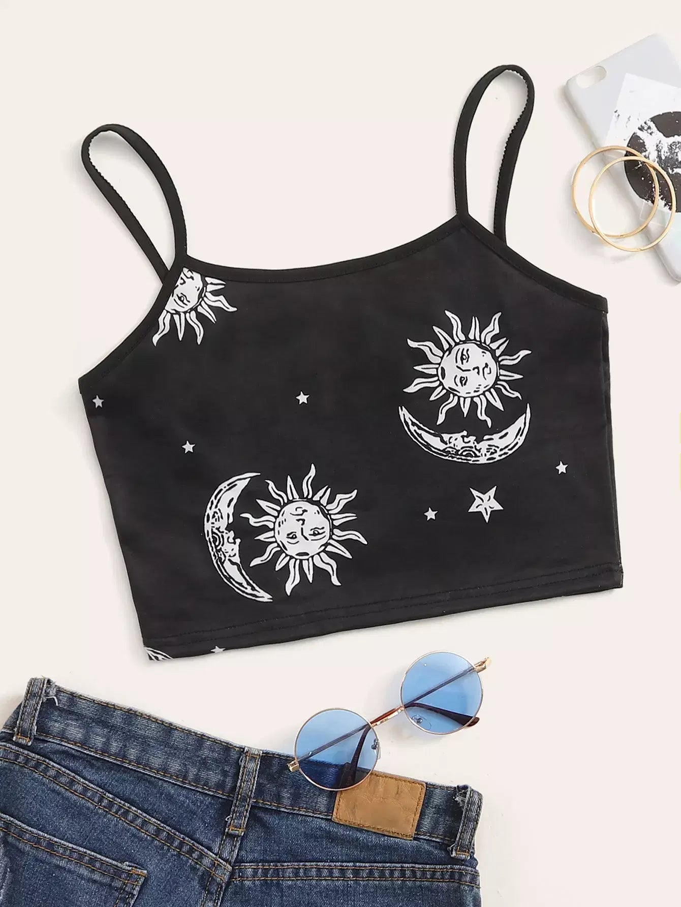 Sun & Moon Graphic Cropped Cami Top