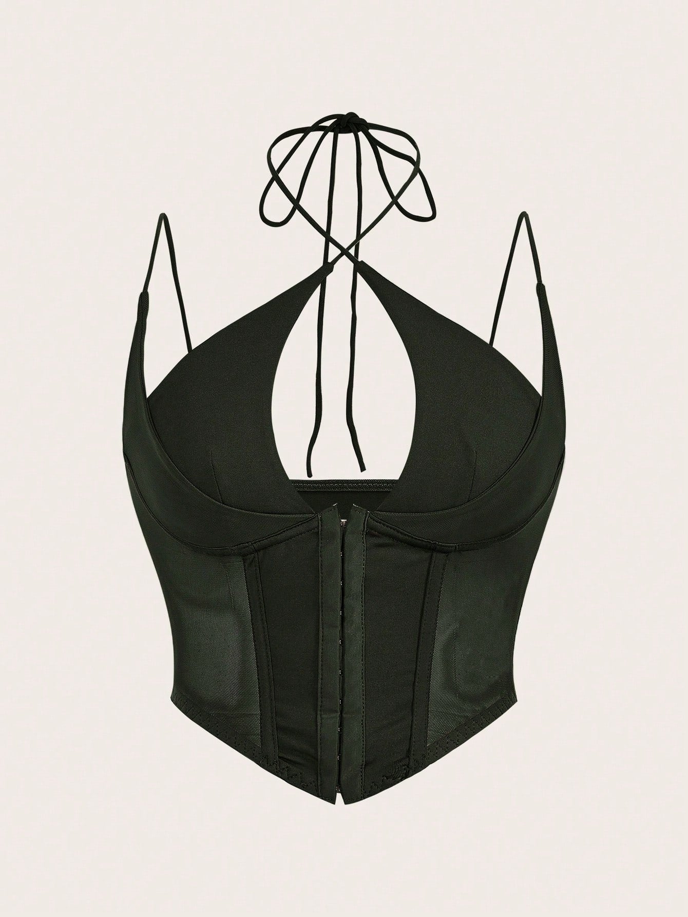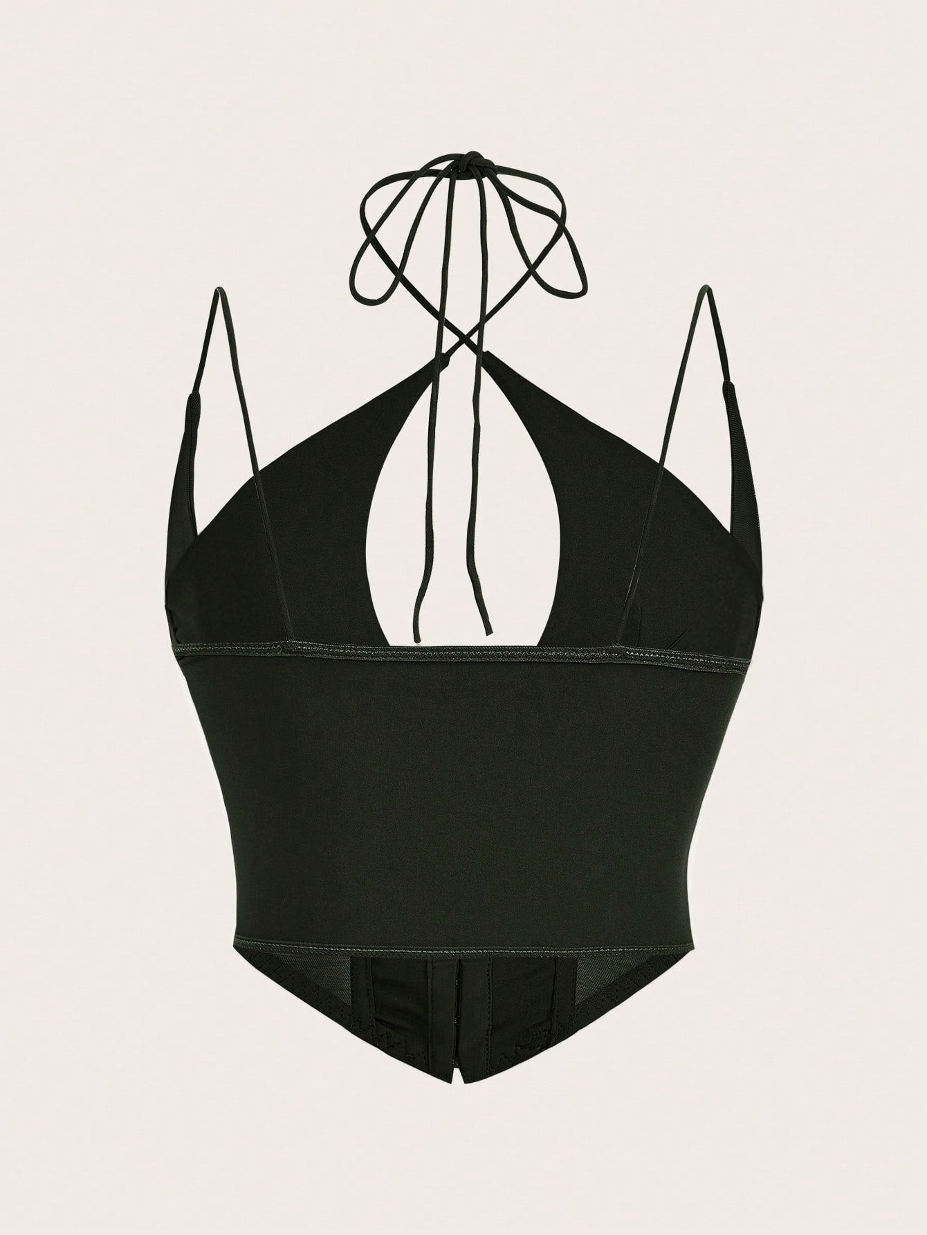 Sweetina White Corset Hook And Eye Front Mesh Insert Cami Top