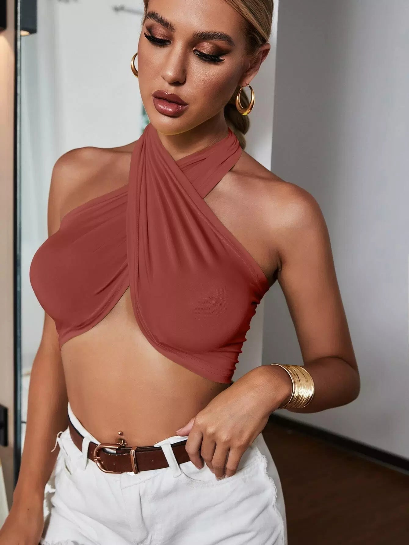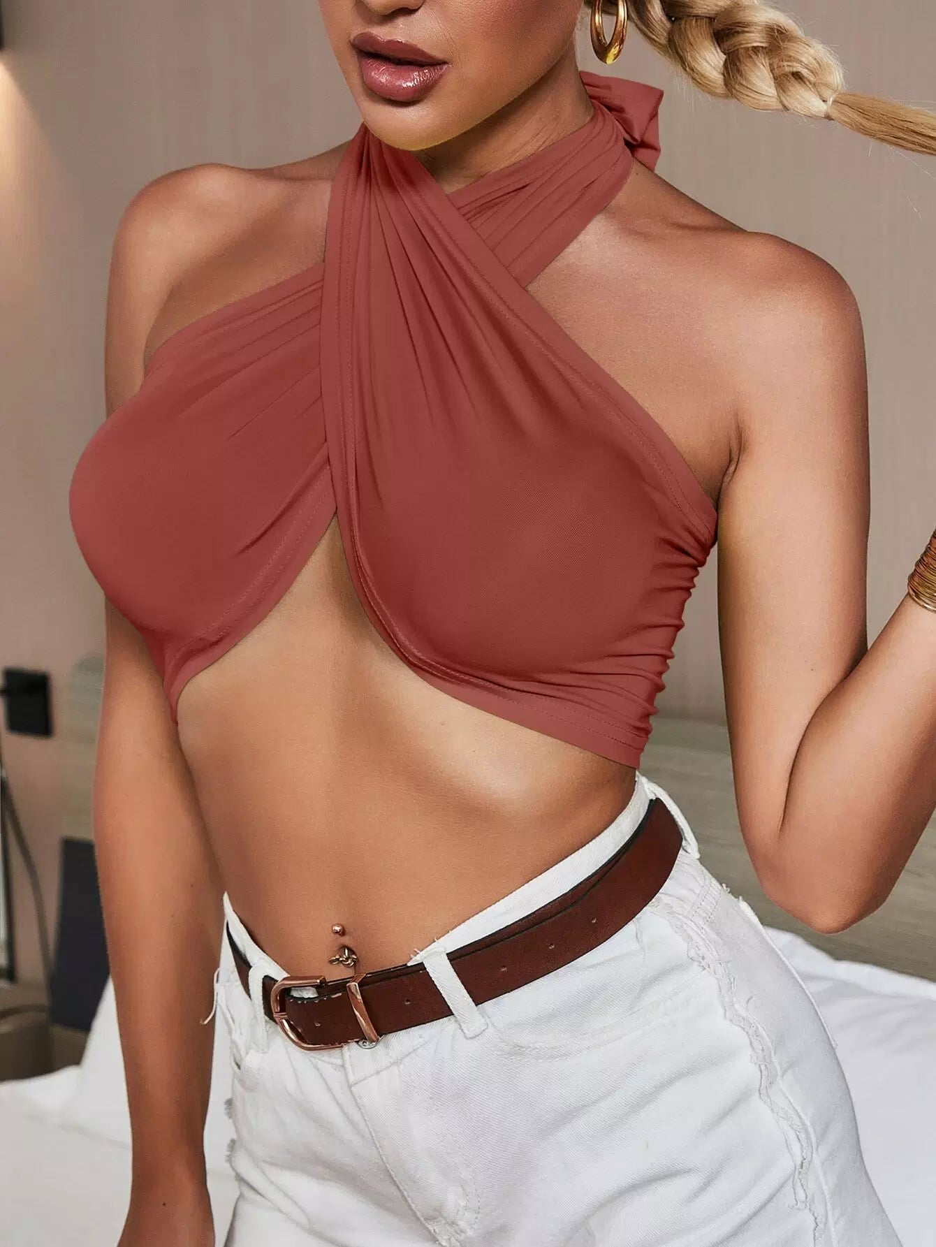 Tie Back Wrap Halter Top
