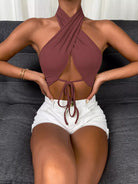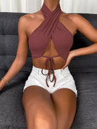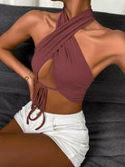 Tie Front Wrap Cross Halter Crop Top