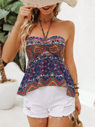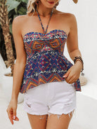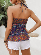 VCAY Vacation Full Print Halter Neck Summer Crop Top