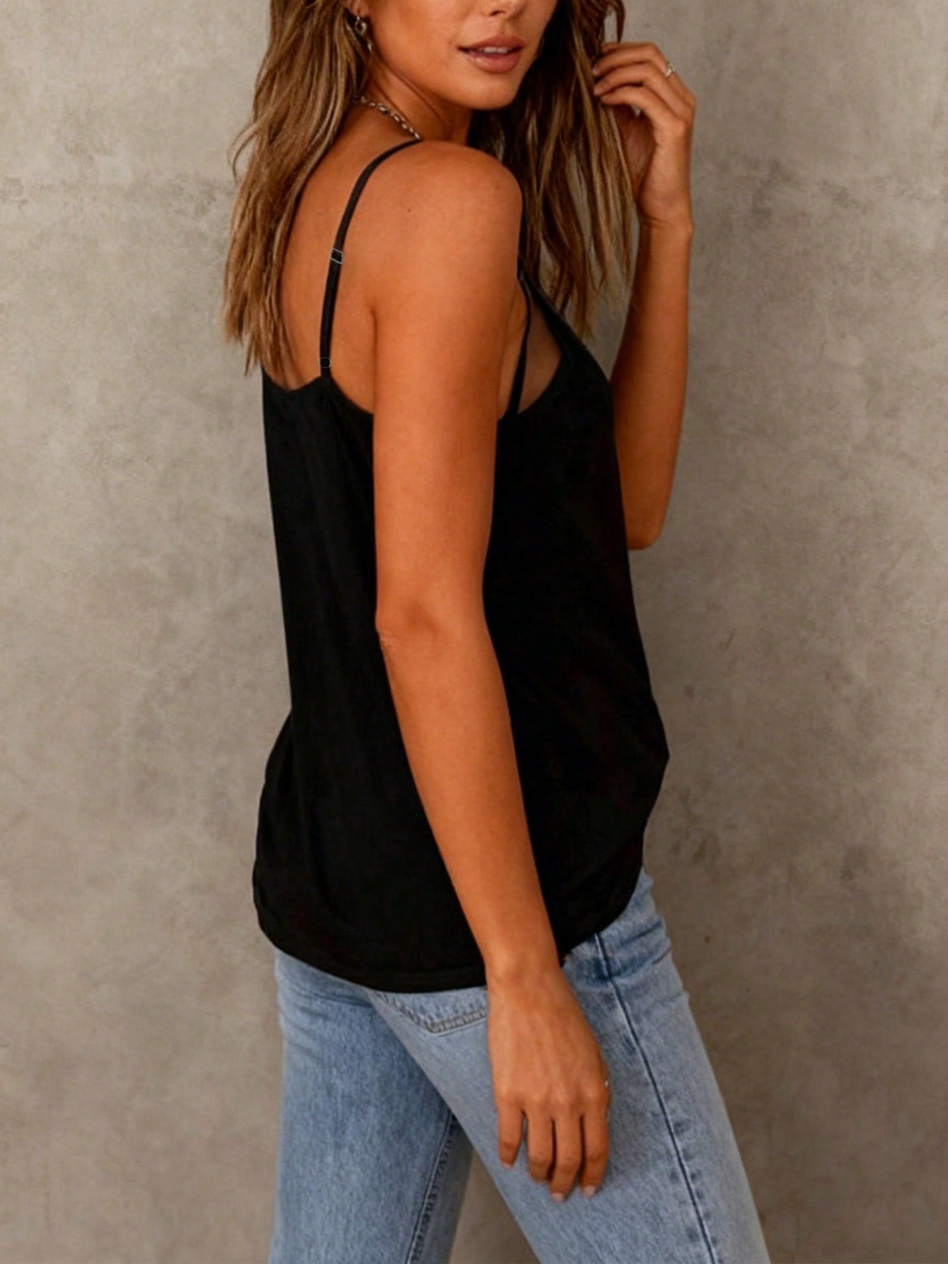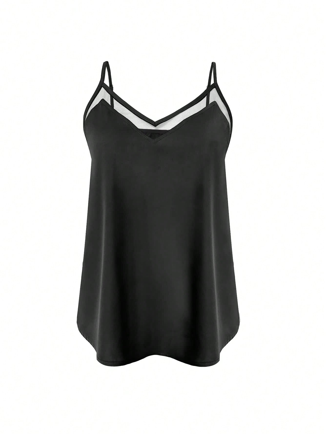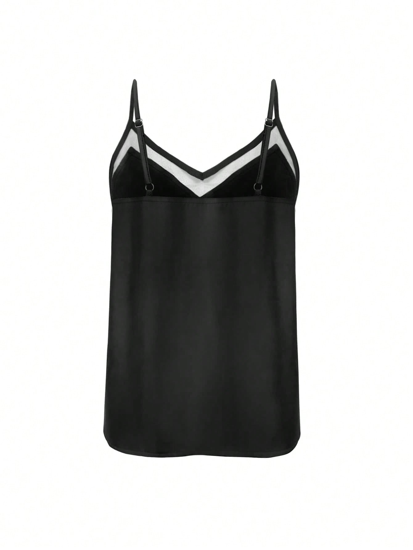 Women's Sleeveless Mesh Panel V-Neck Spaghetti Strap Camisole Tank Top