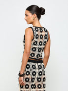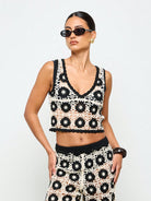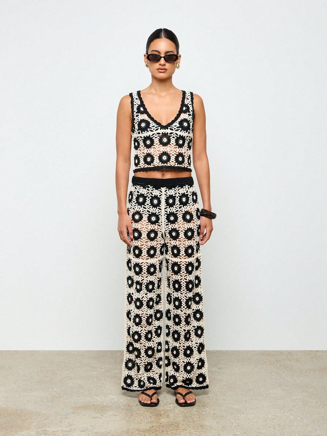 AiiRZ Flower Crochet Casual See Through Round Deep Neck Sleeveless Top