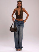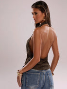 BAE Women's Solid Deep V-Neck Metal Trim Sexy Blouse, Suitable For Summer