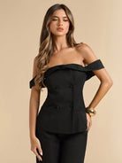 BAE Women's Summer Black Sleeveless Off The Shoulder Blazer Style Top/Black Top/Formal Dresses For Women/Easter