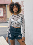 Butterfly Sheer Mesh Top Without Cami
