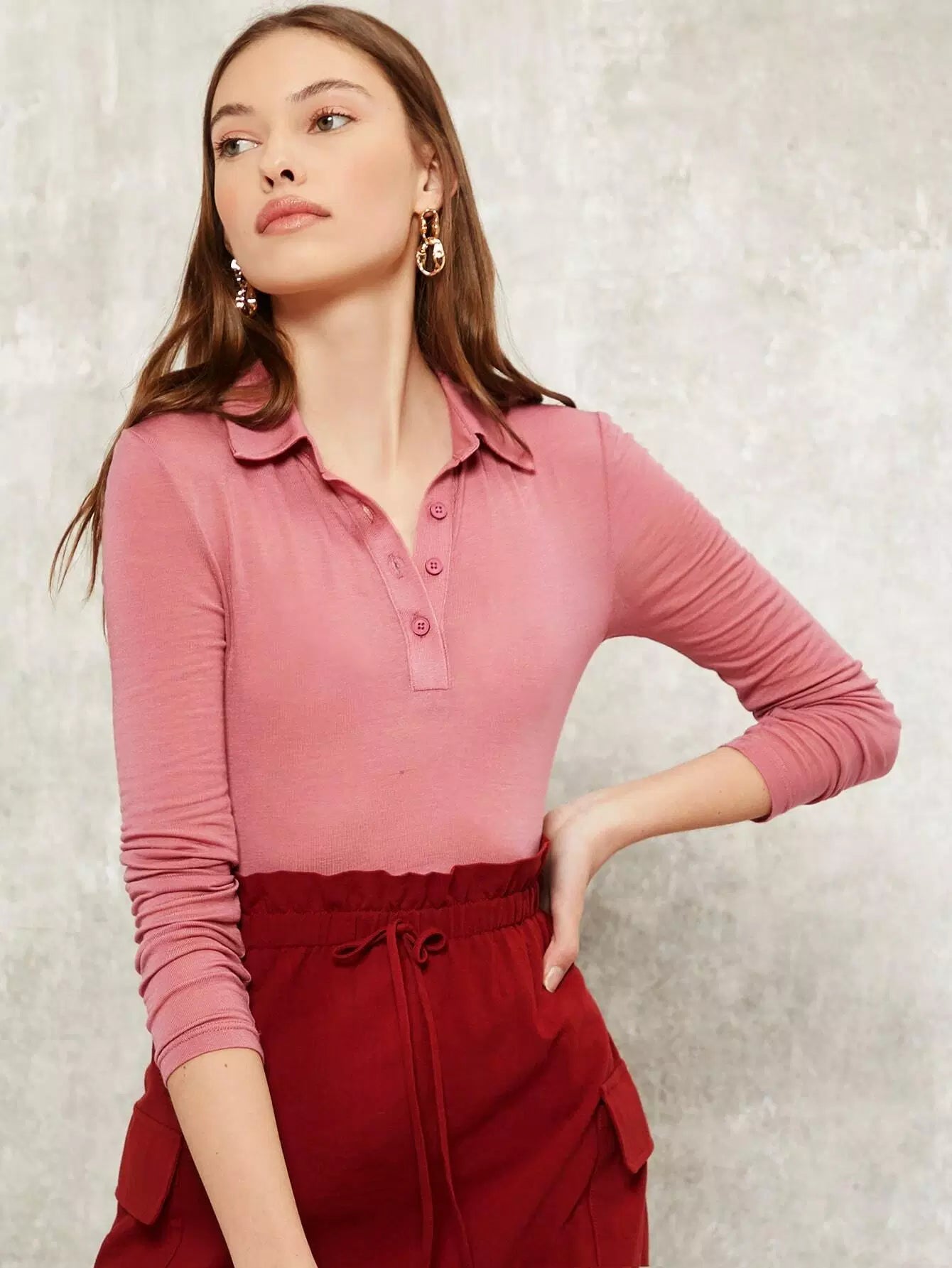 Button Half Placket Solid Top