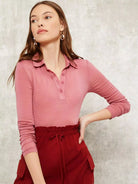 Women - Button Half Placket Solid Top