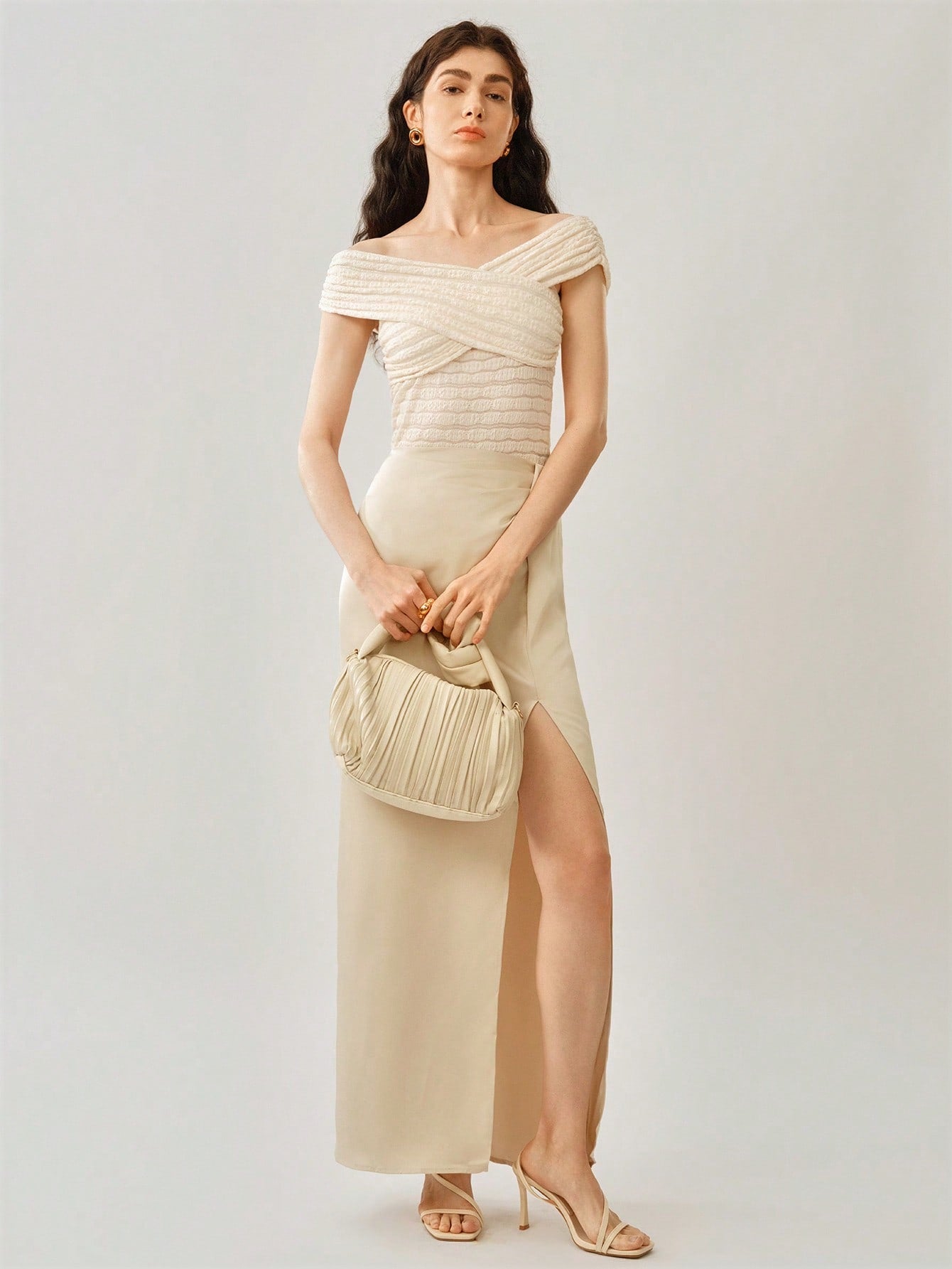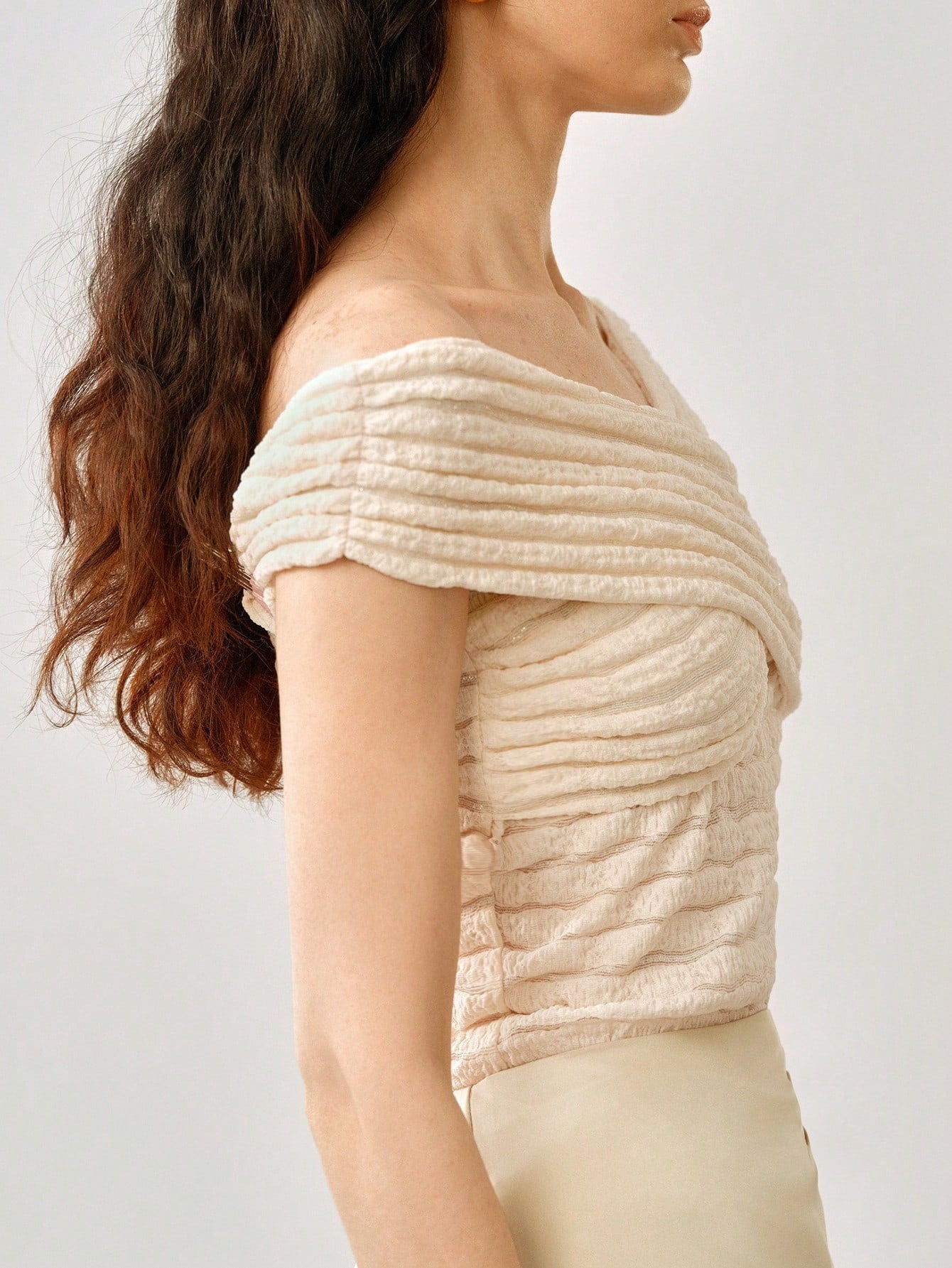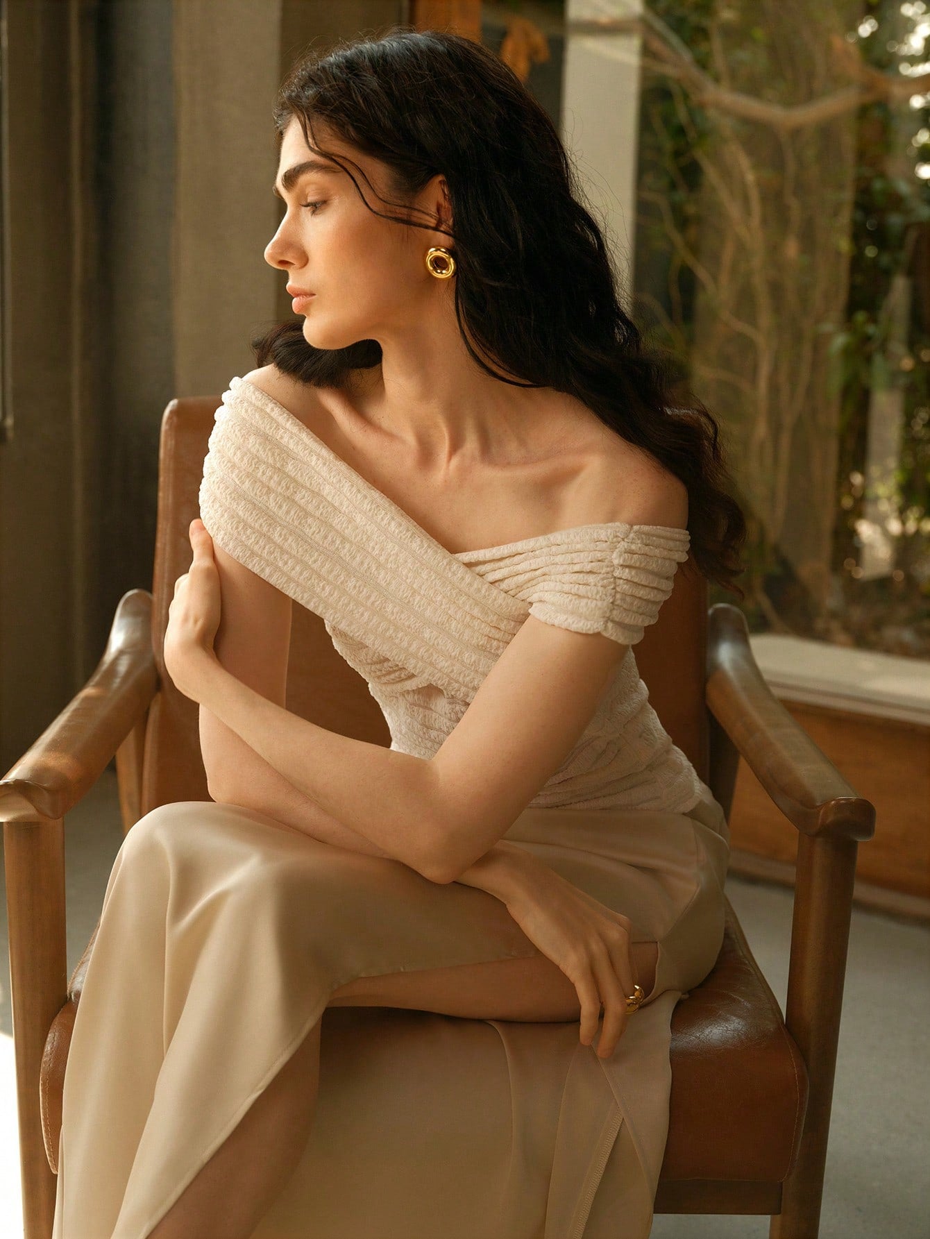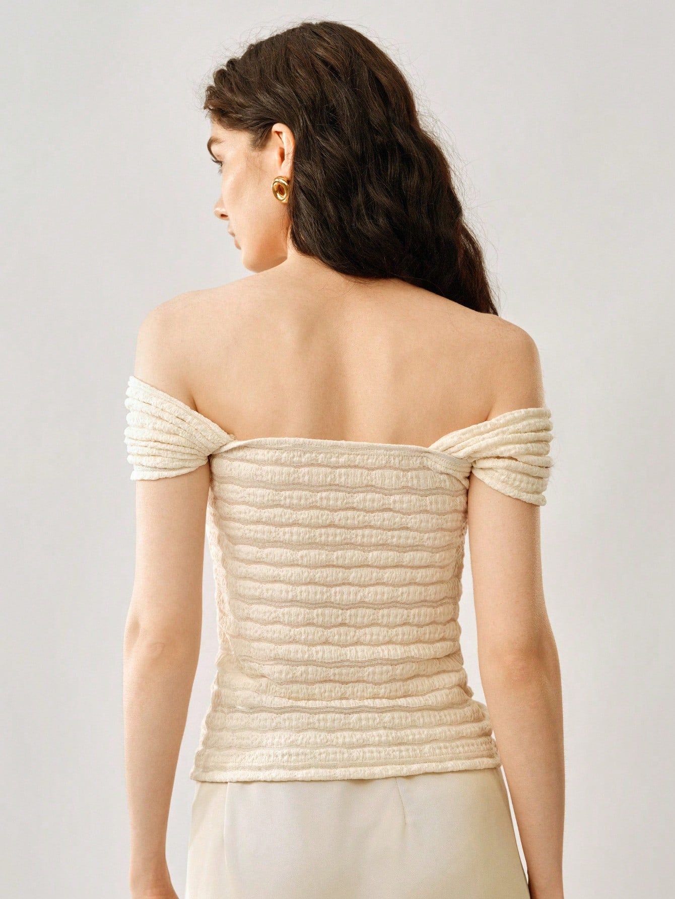 women Chiquease Elegant Off-The-Shoulder Top In Slim-Fit Textured Knit Fabric