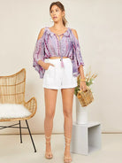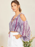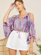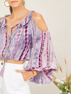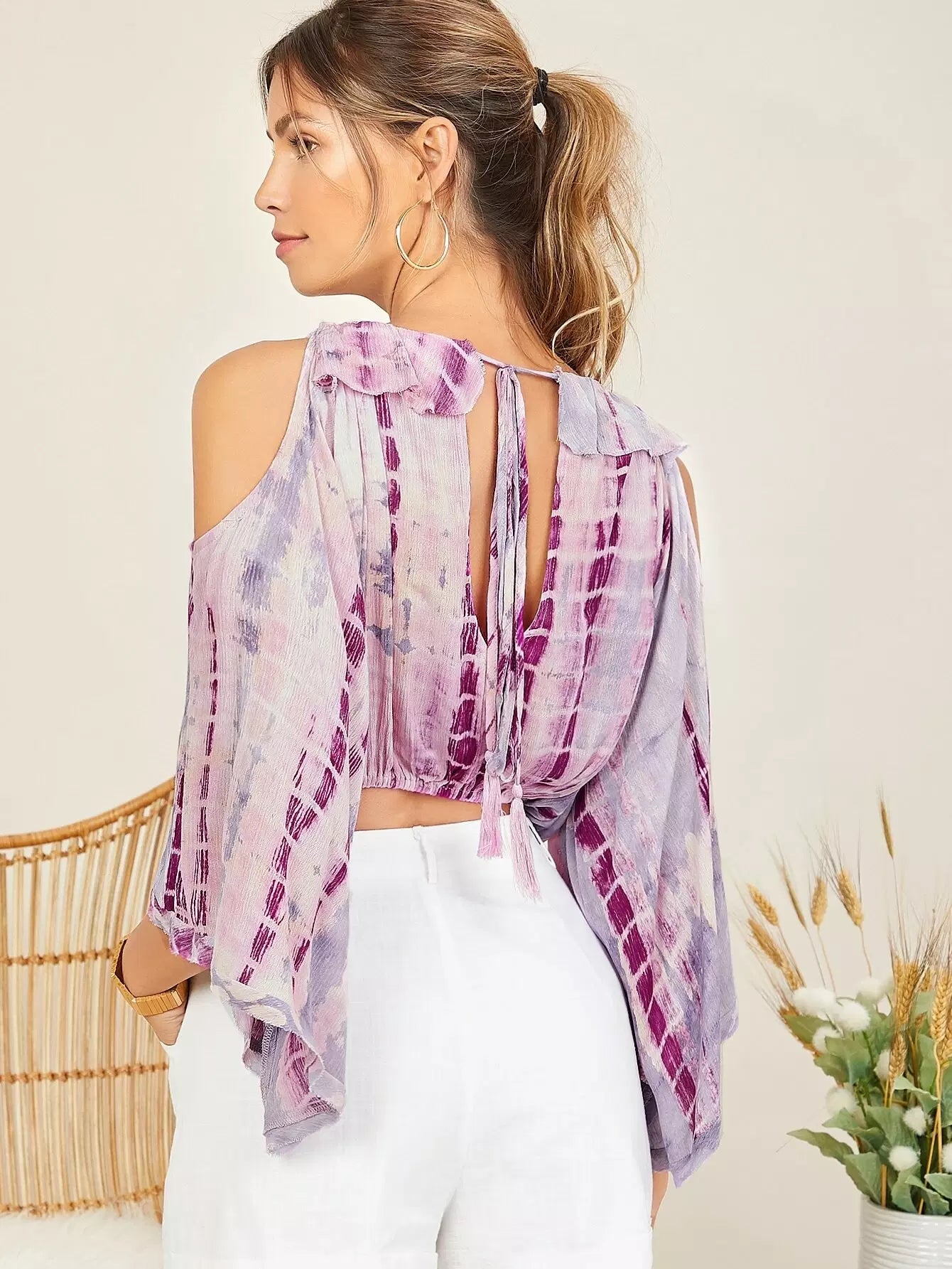 Cold Shoulder Tie Dye Long Sleeve Ruffle Crop Top
