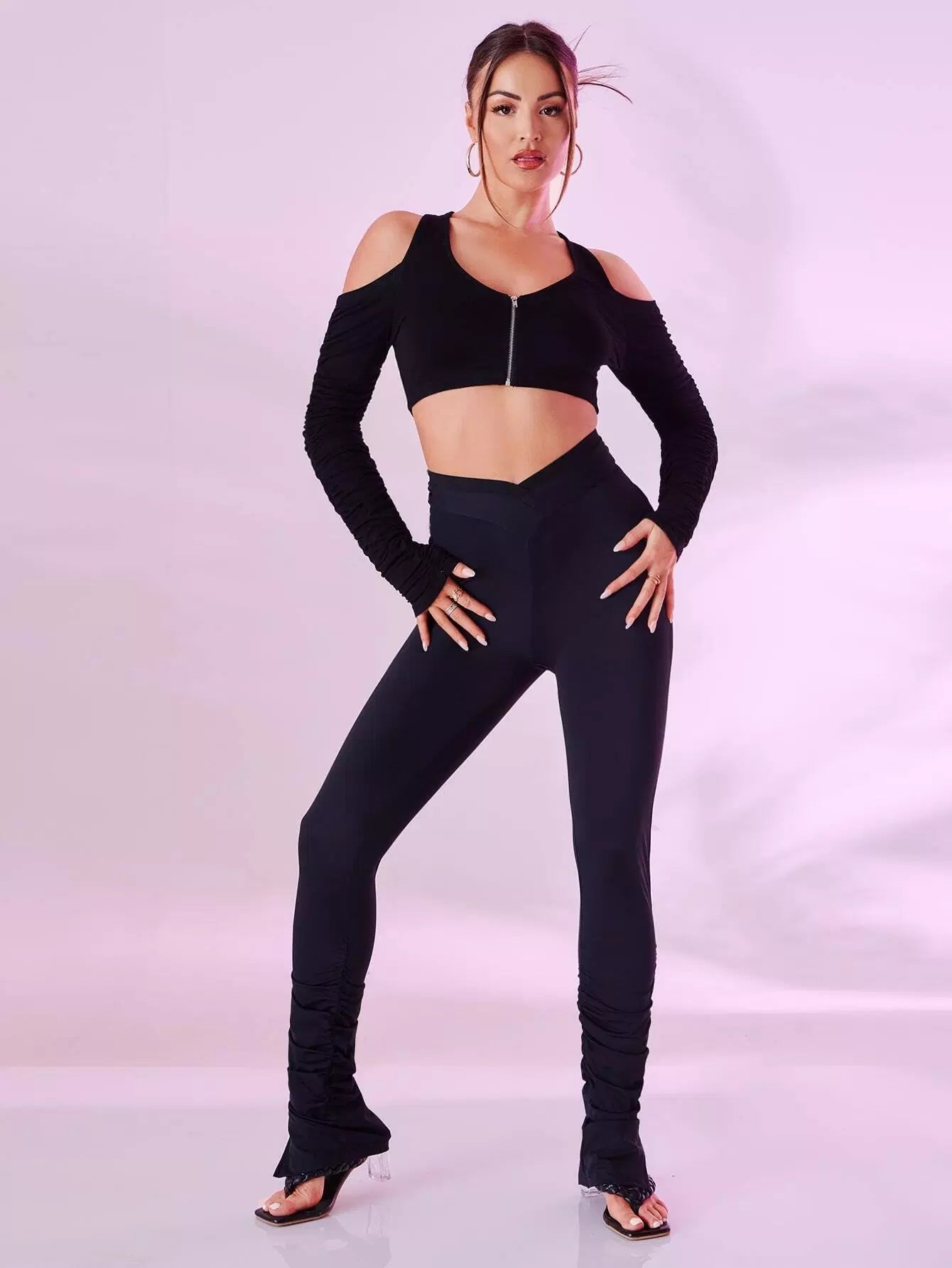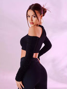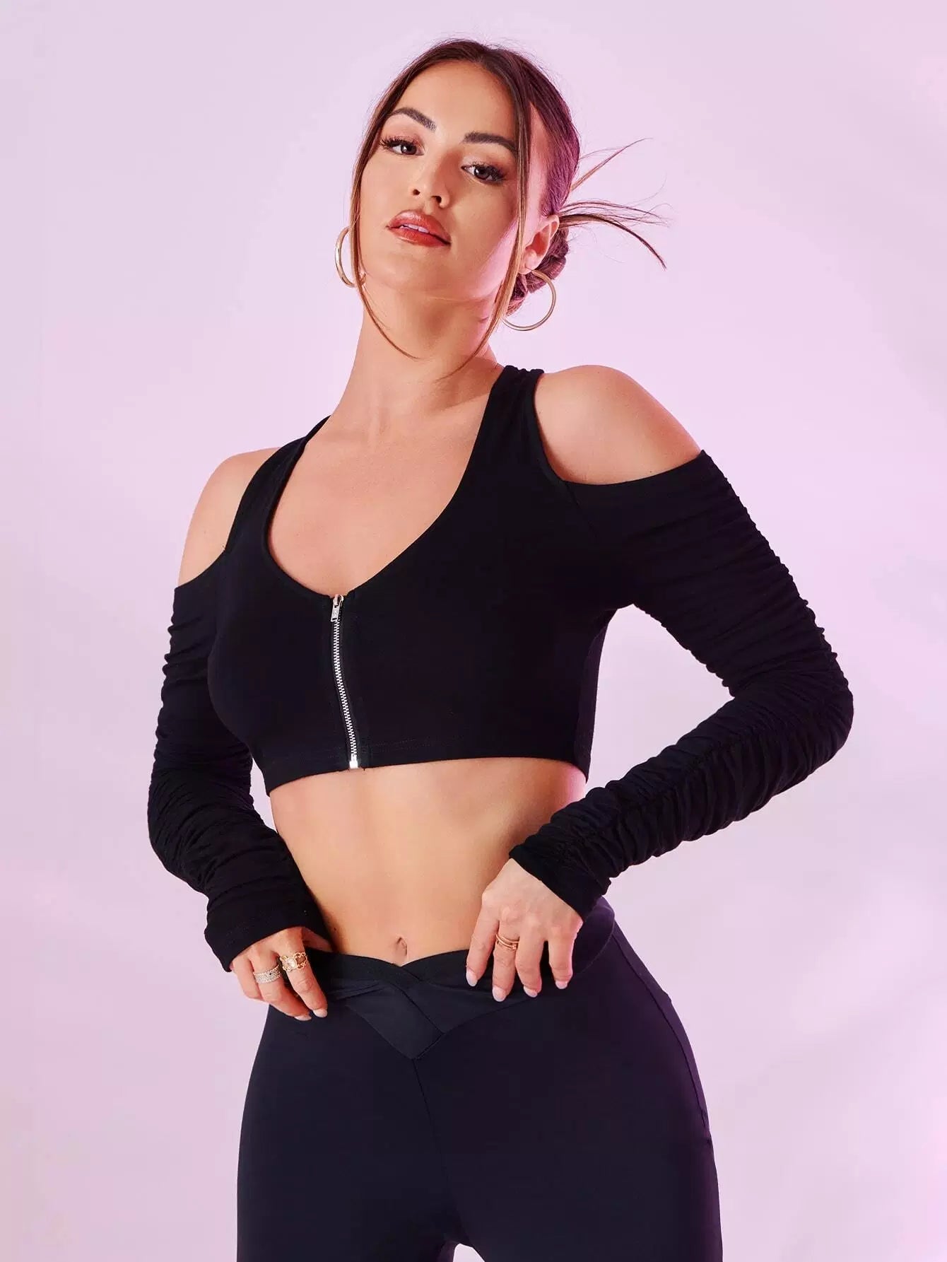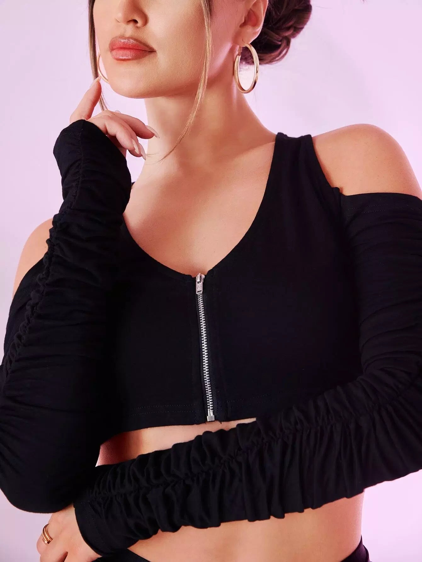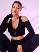 Cold Shoulder Zip Up Crop Top