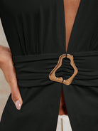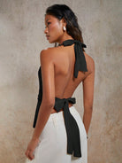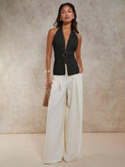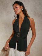 COSMINA Women's Elegant Deep V Metal Buckle Decoration, Spring/Summer Deep V Neck Top Backless Halter