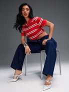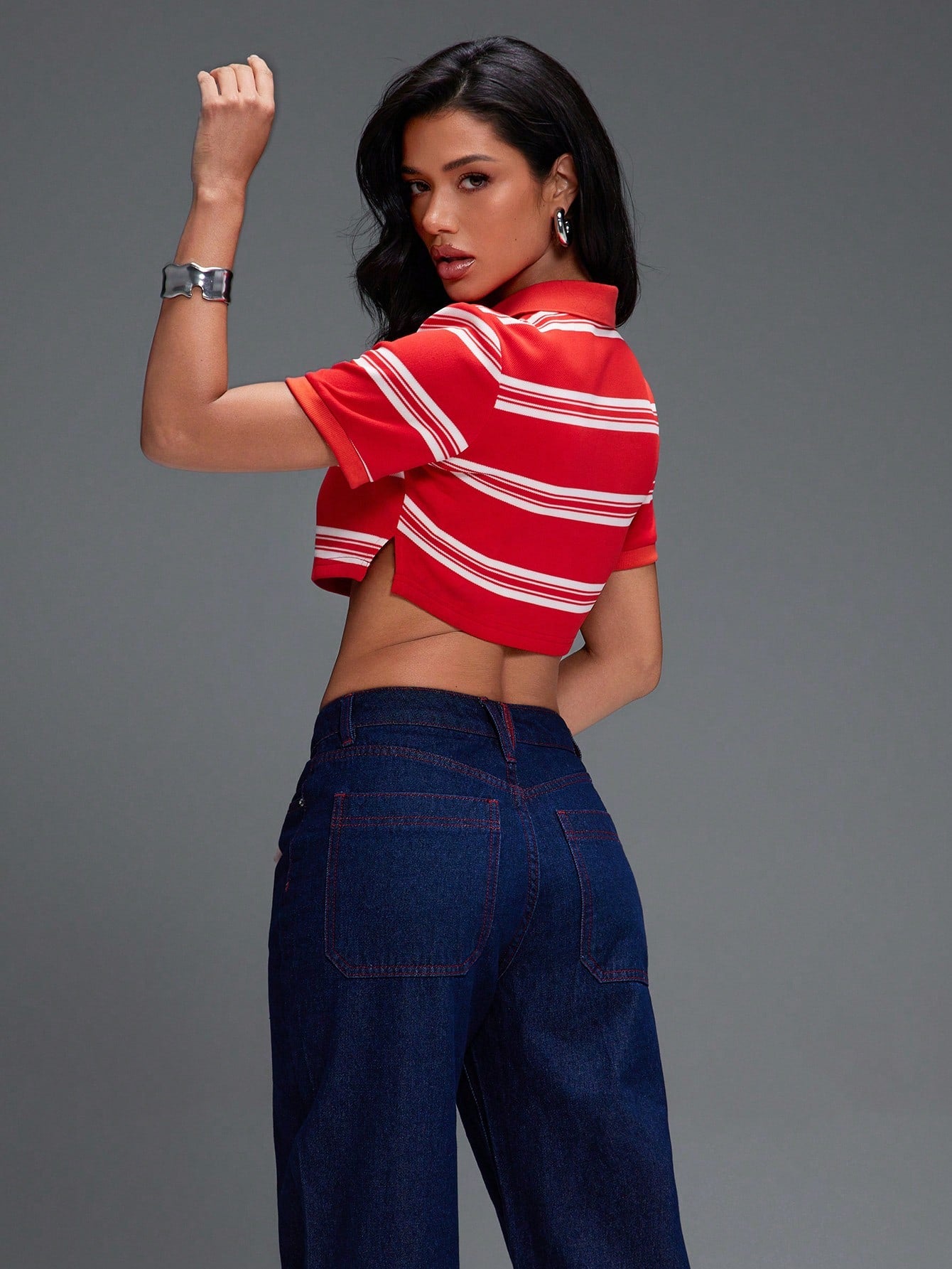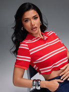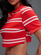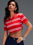 Denimoi Cropped Collared Stripe Polo Shirt For Summer Cropped Polo Shirt Crop Top Preppy Outfits Fashionable