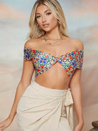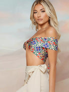 Floral Twist-Front Off-the-Shoulder Crop Top