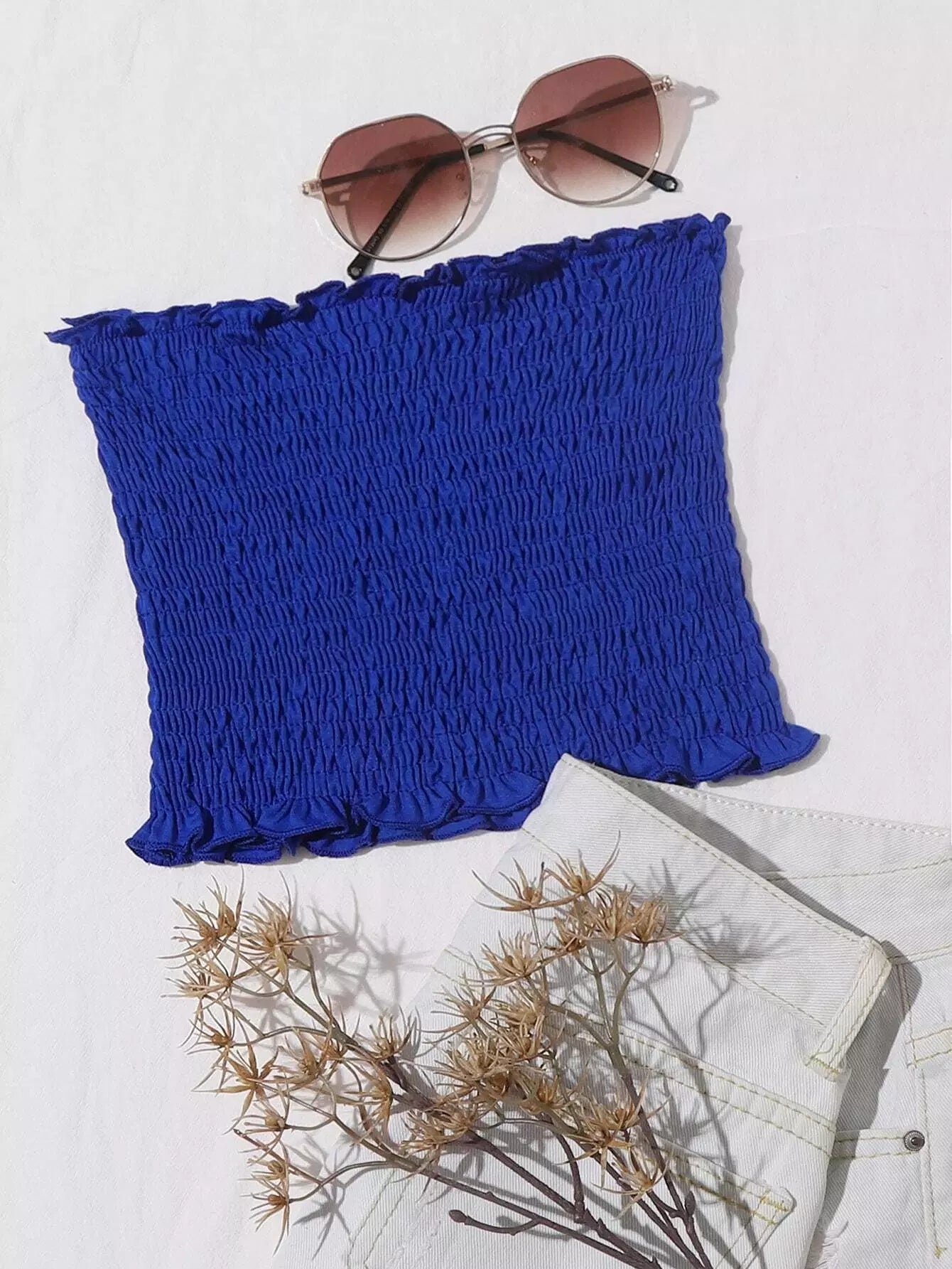 Frill Trim Shirred Tube Top