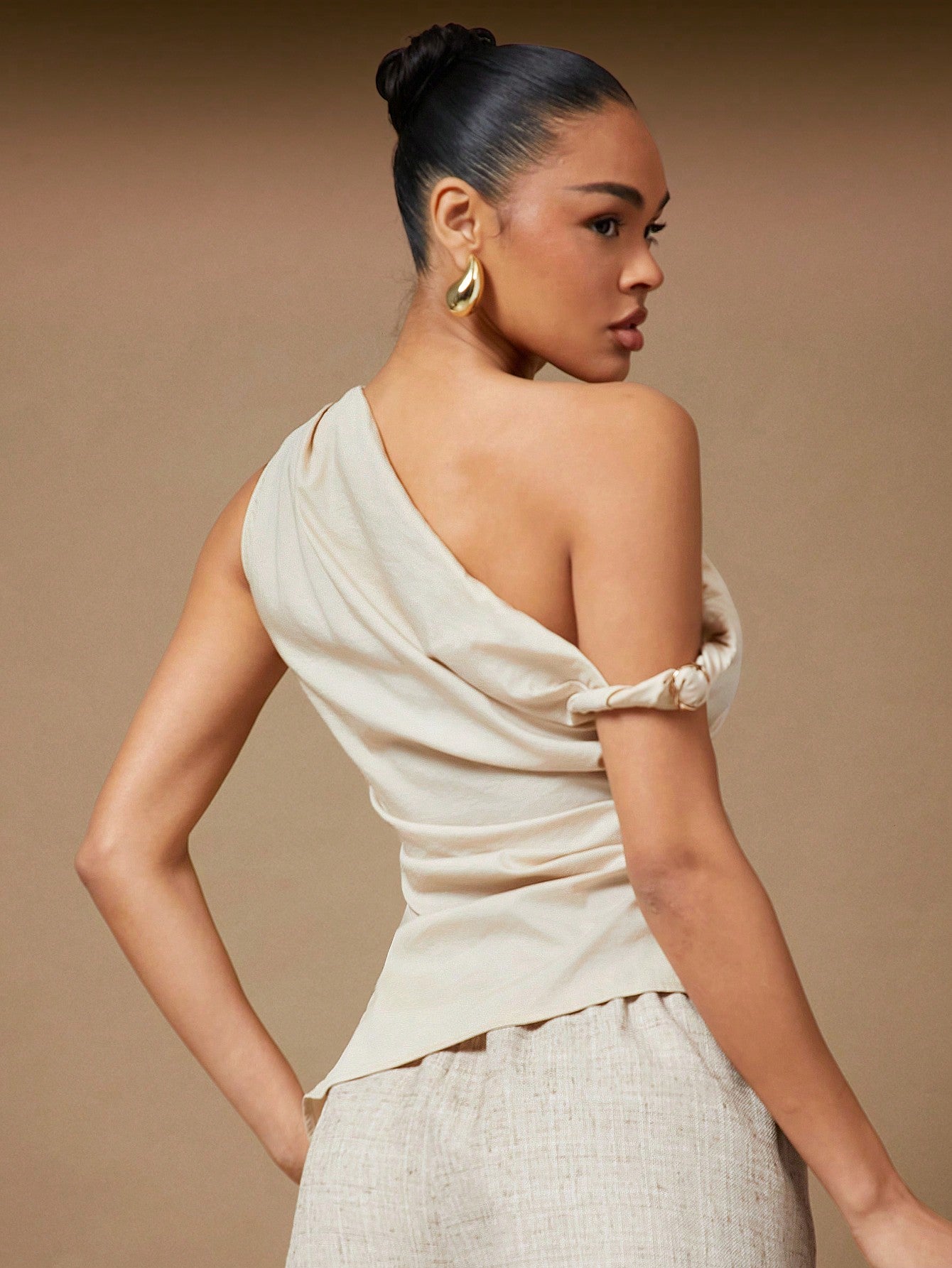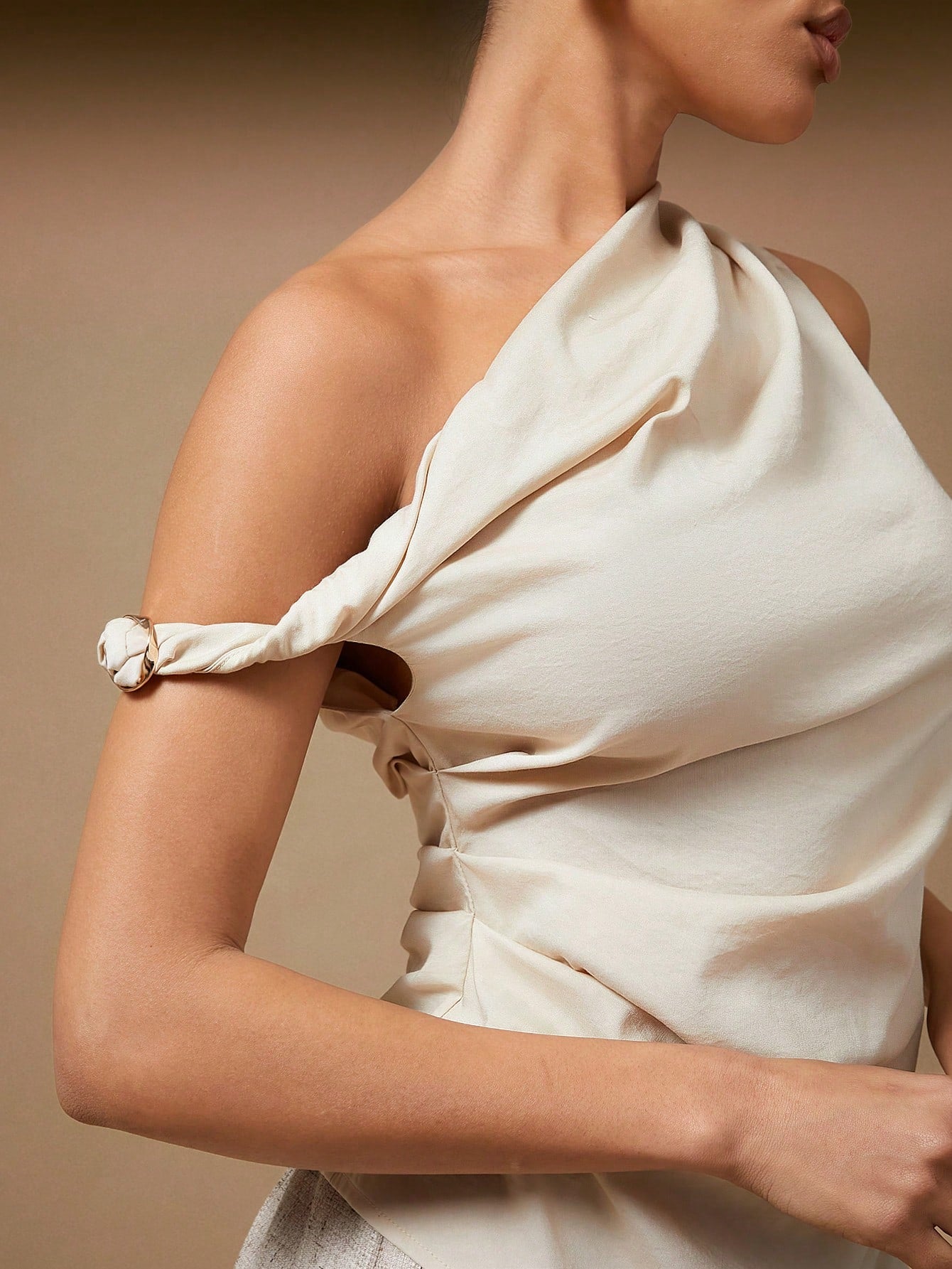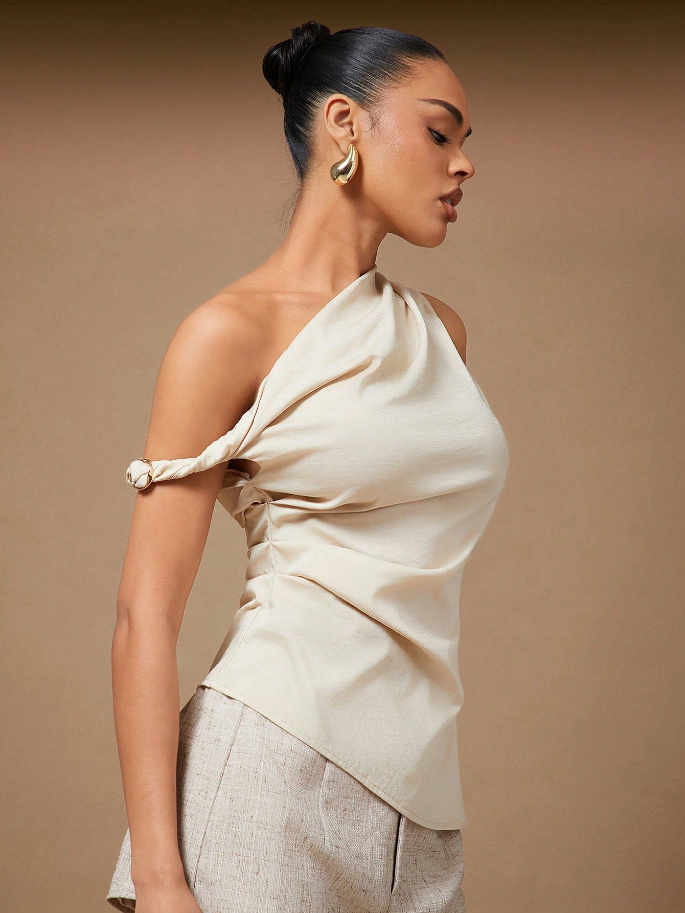 Hauture Summer Women Women Clothes Asymmetrical Embellished Ruched Asymmetrical Shoulder Drape Top