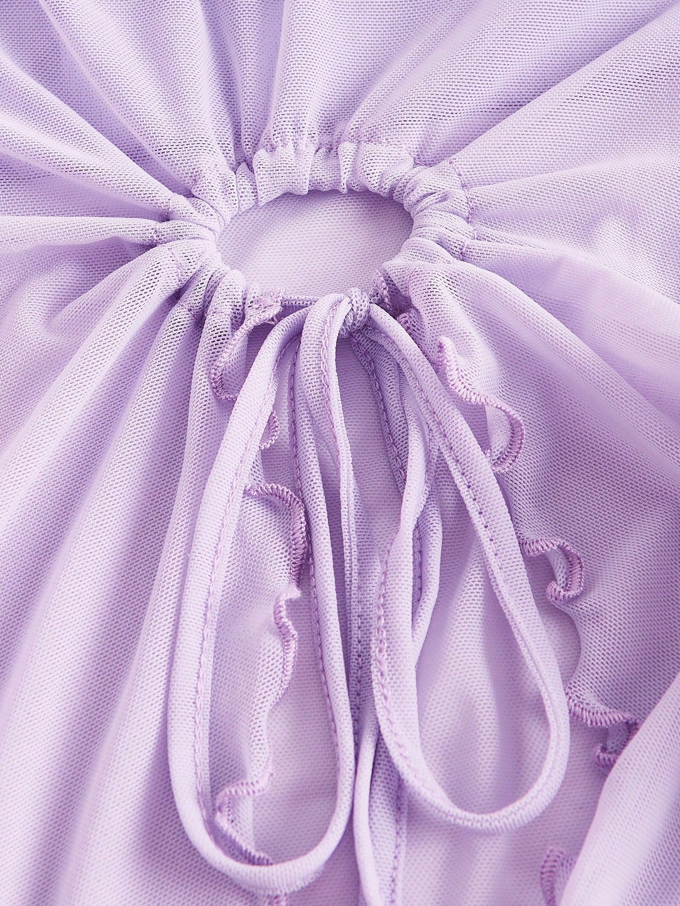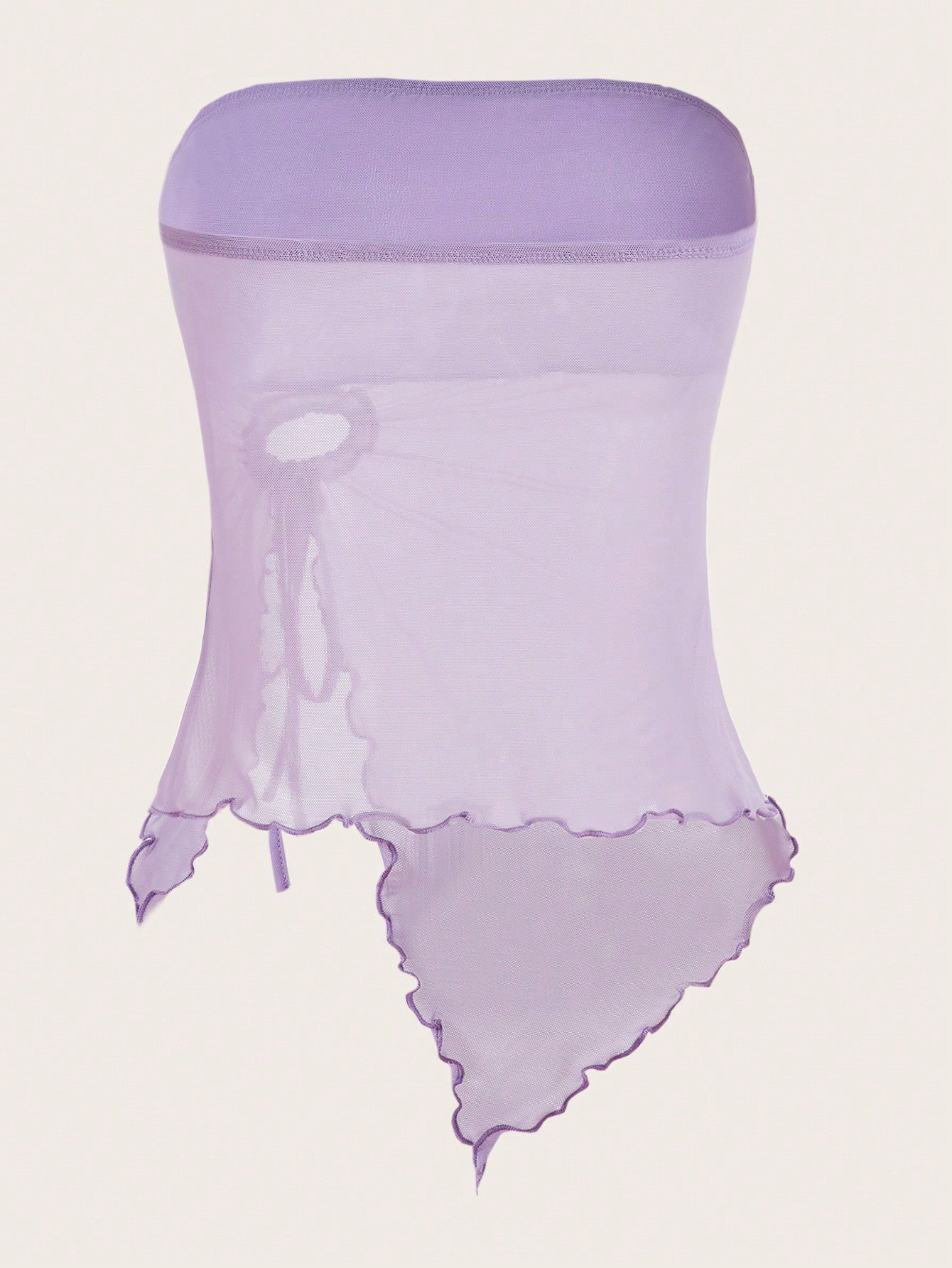 ICON Drawstring Side Asymmetrical Hem Mesh Tube Top