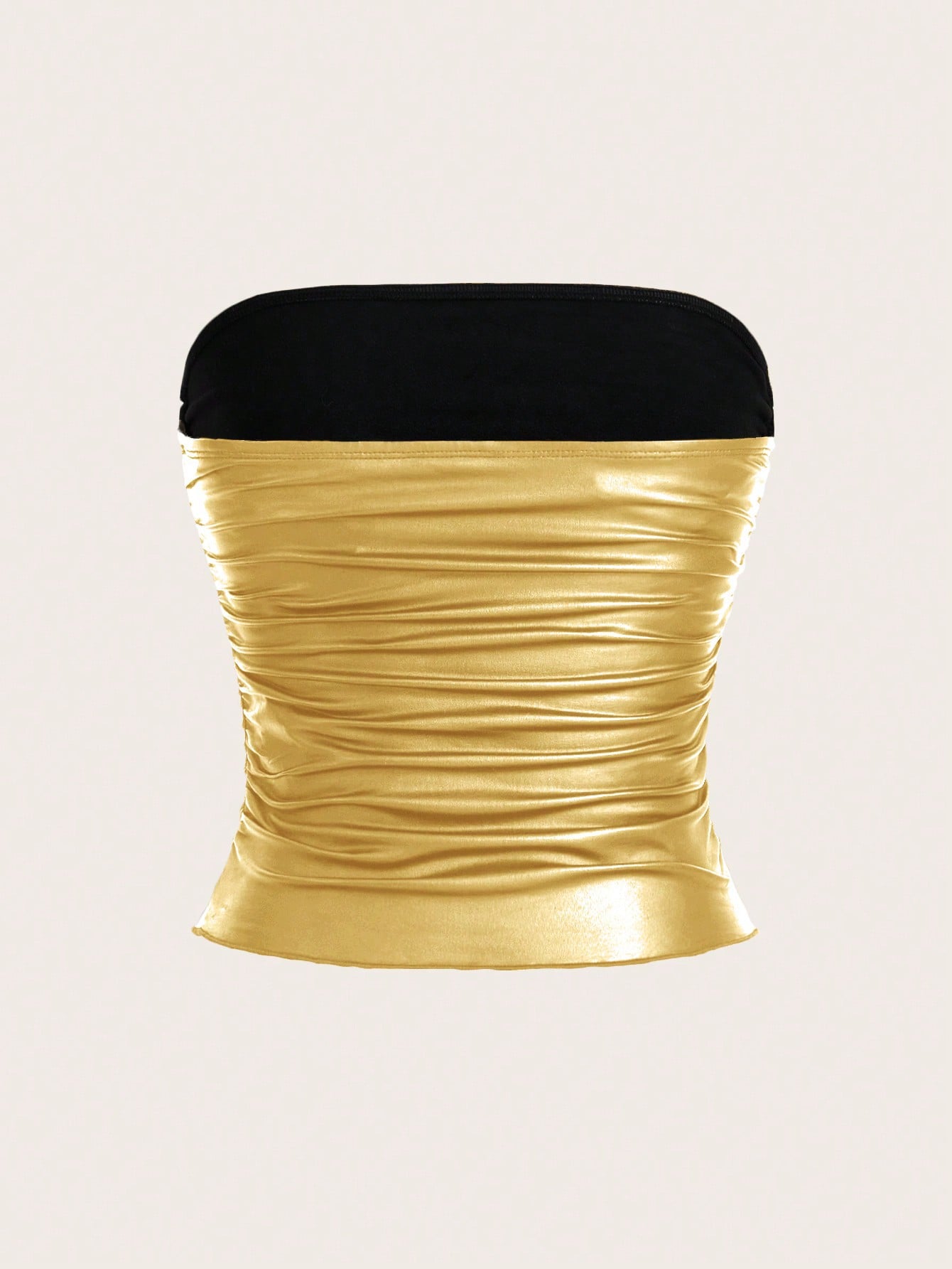 ICON Women's Metallic Pleated Slim Fit Strapless Top For Summer