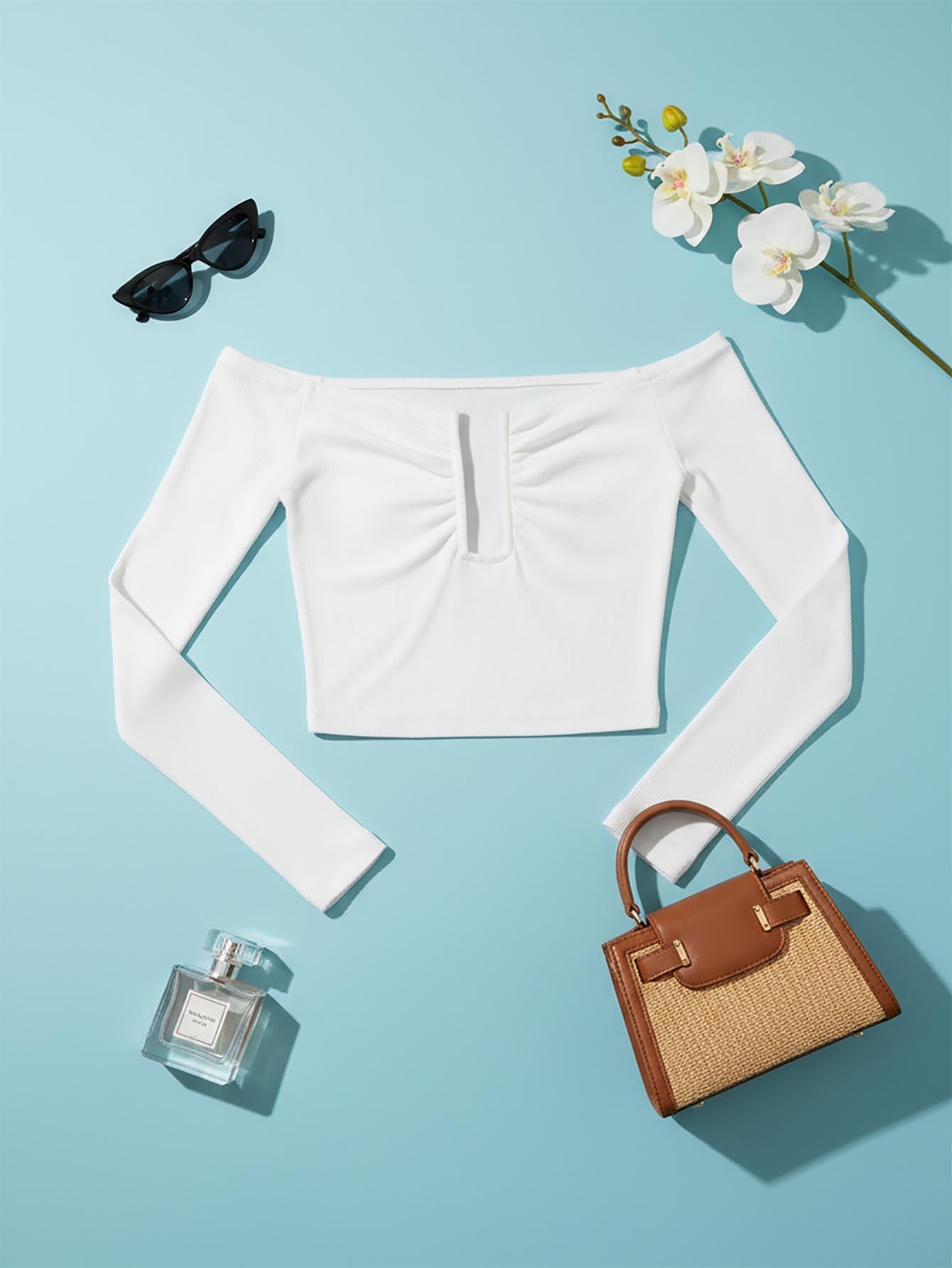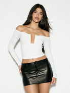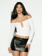 KIZN Long Sleeve Cut-Out Crop Top Corset Style Club Party Evening Modern Wire Front Deep V Design Off-Shoulder
