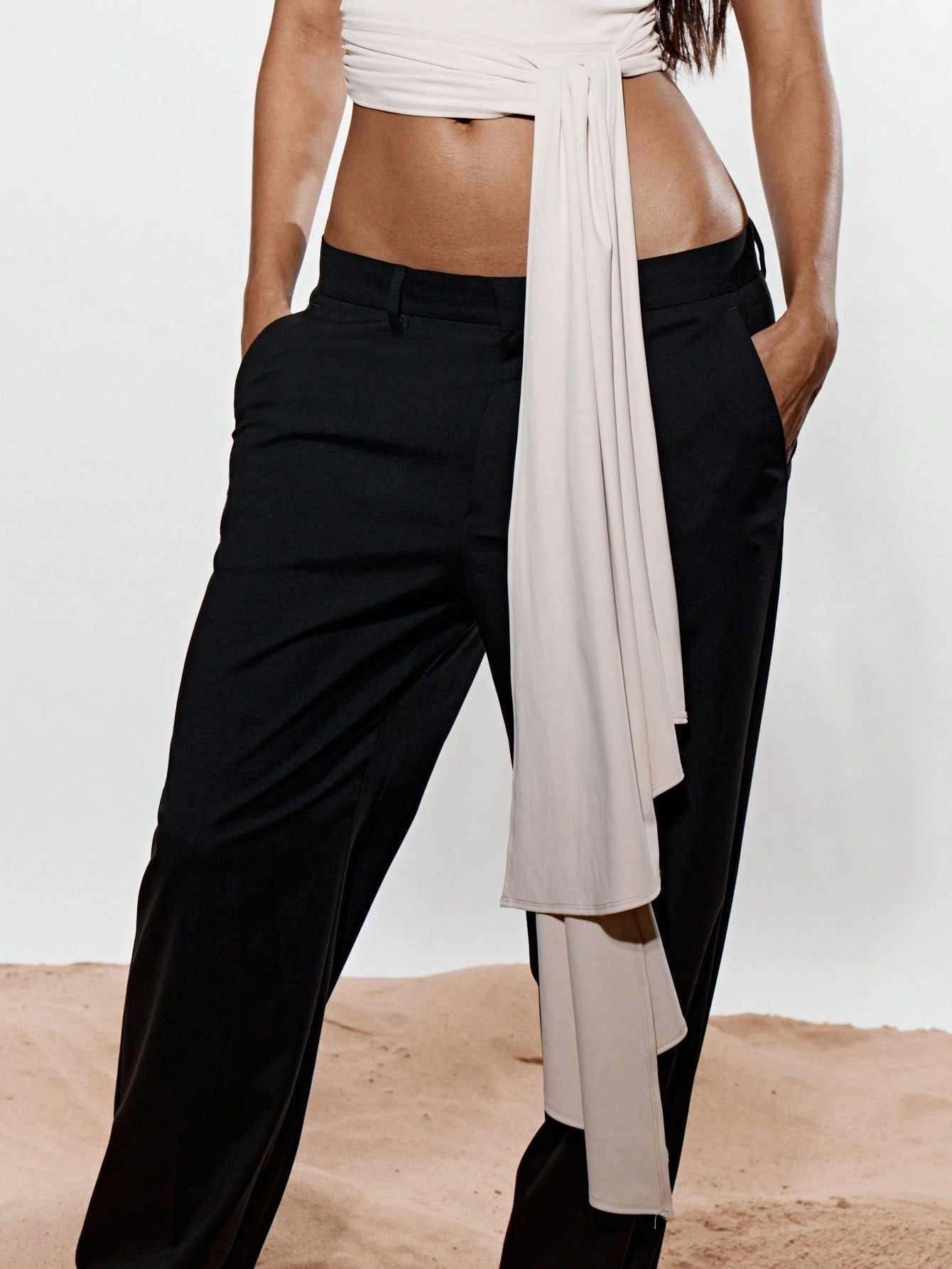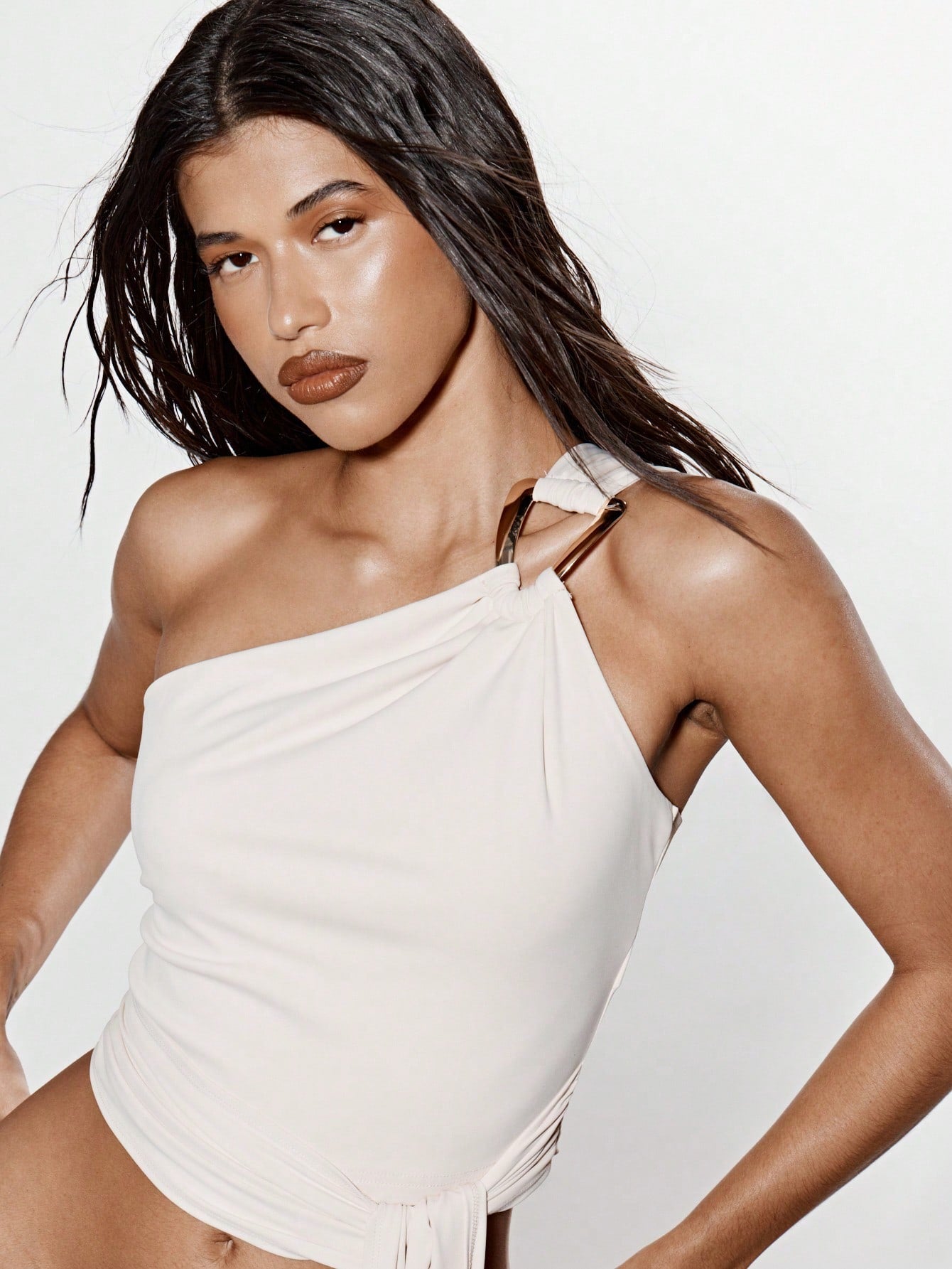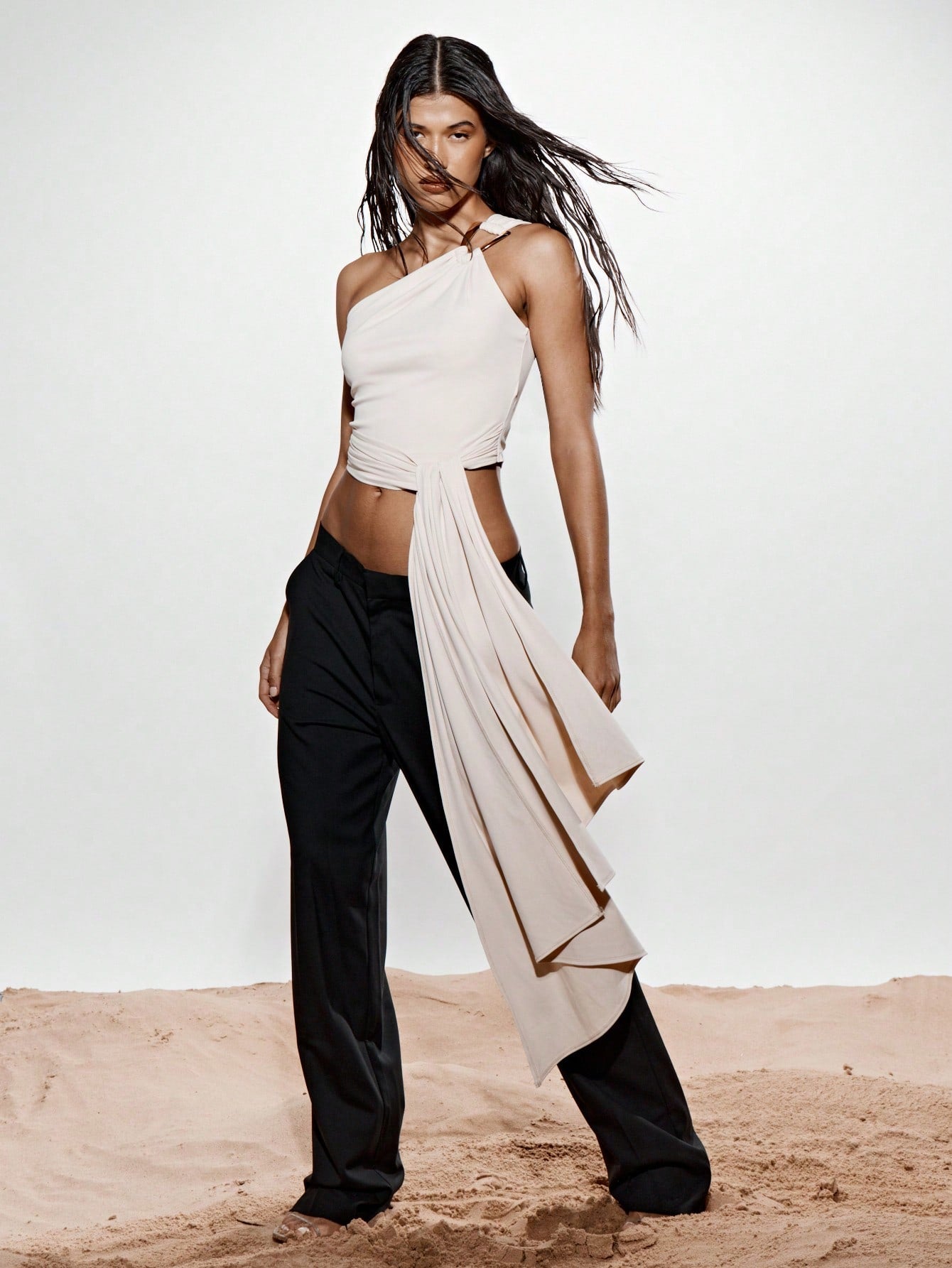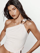 KIZN One Shoulder Trim Detail Tie Drape Top