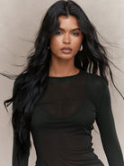 MISSGUIDED Sheer Long Sleeve Form Fitted Mesh Top Fall Winter Layering Essential Crew Neck Lightweight