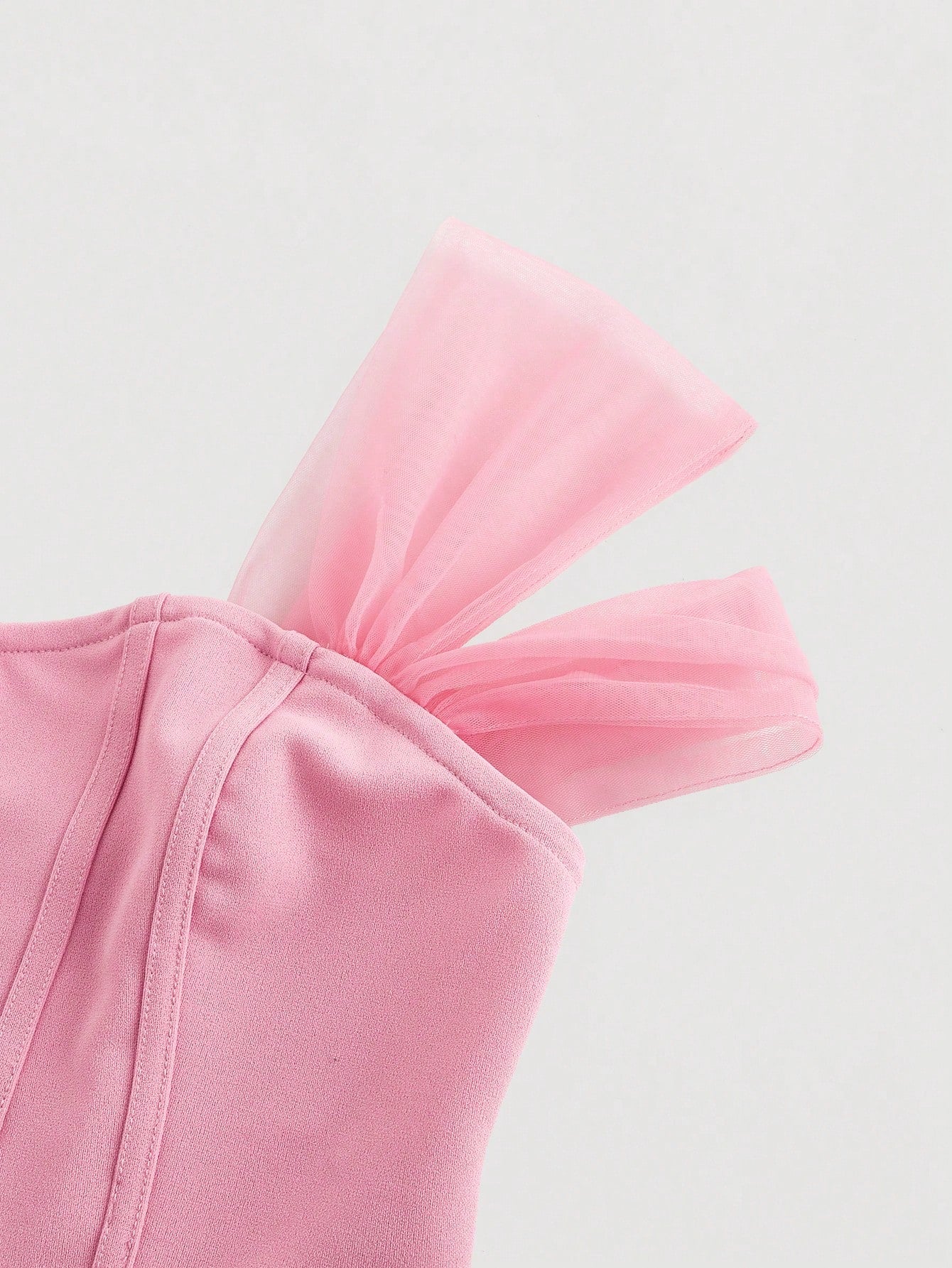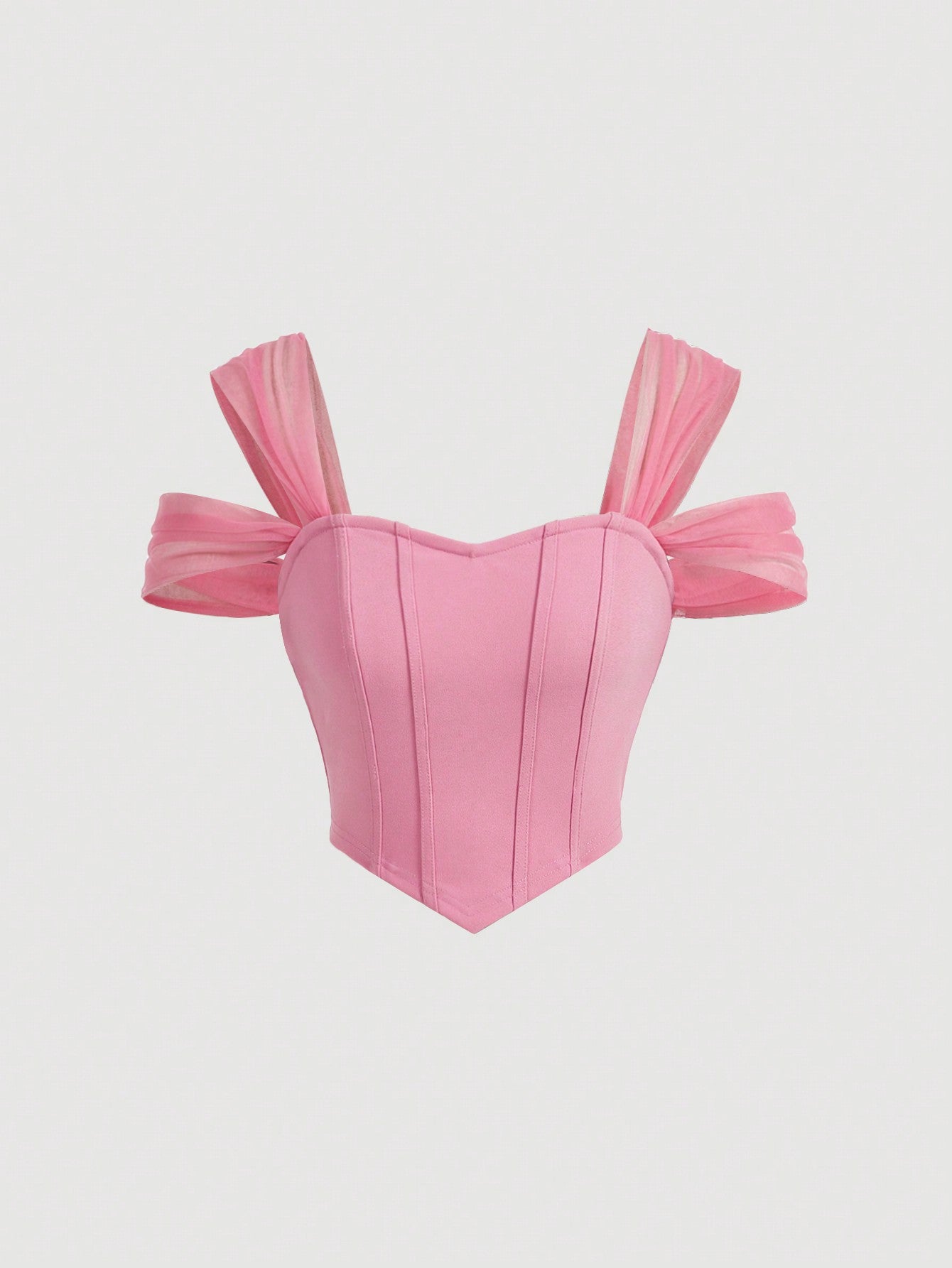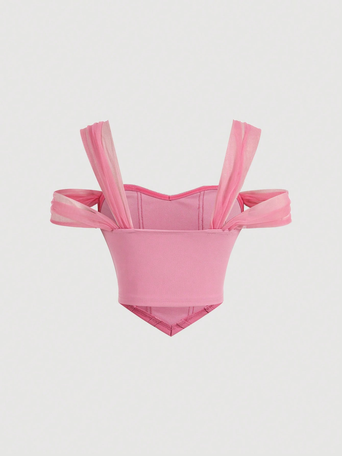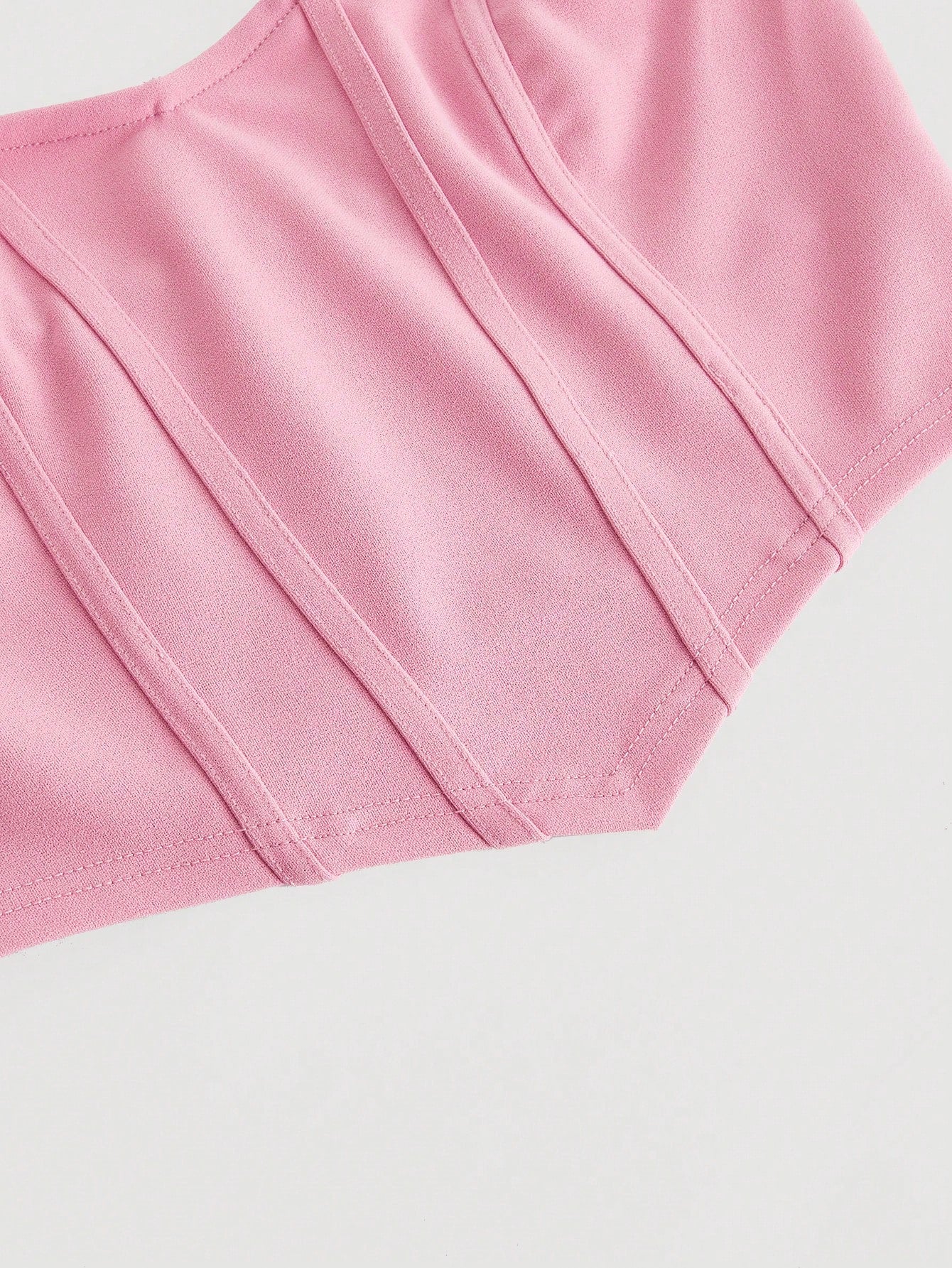 MOD Solid Asymmetrical Hem Mesh Panel Bodycon Pink Summer Corset Structure Top