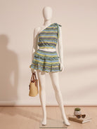 MUSERA Textured Asymmetrical Neck Top Vacation Boho Ibiza Elegant Beach Cute. Beach House Festival Going
