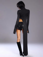 MUSERA Turtleneck Side Split Long Sleeve Top Summer Holiday Ibiza Beachwear For Spring Vacation Festival