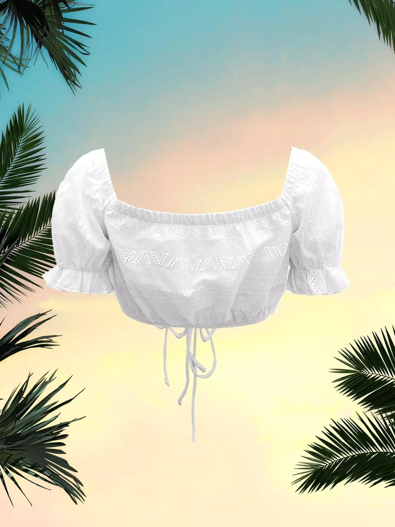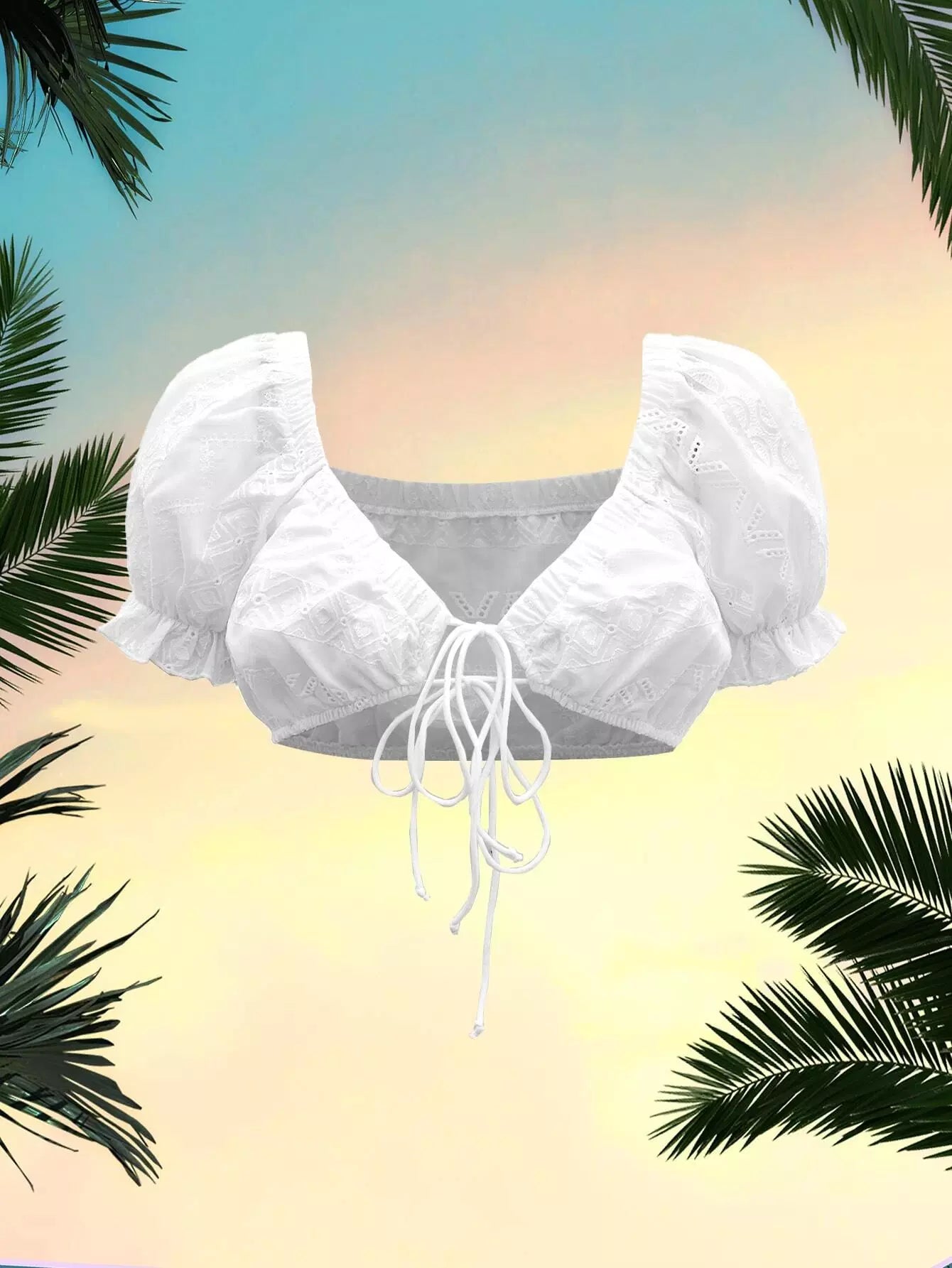 Puff Sleeve Tie Front Sweetheart Neck Schiffy Crop Top