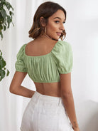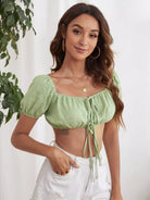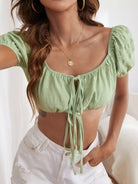 Women - Puff Sleeve Tie Front Top
