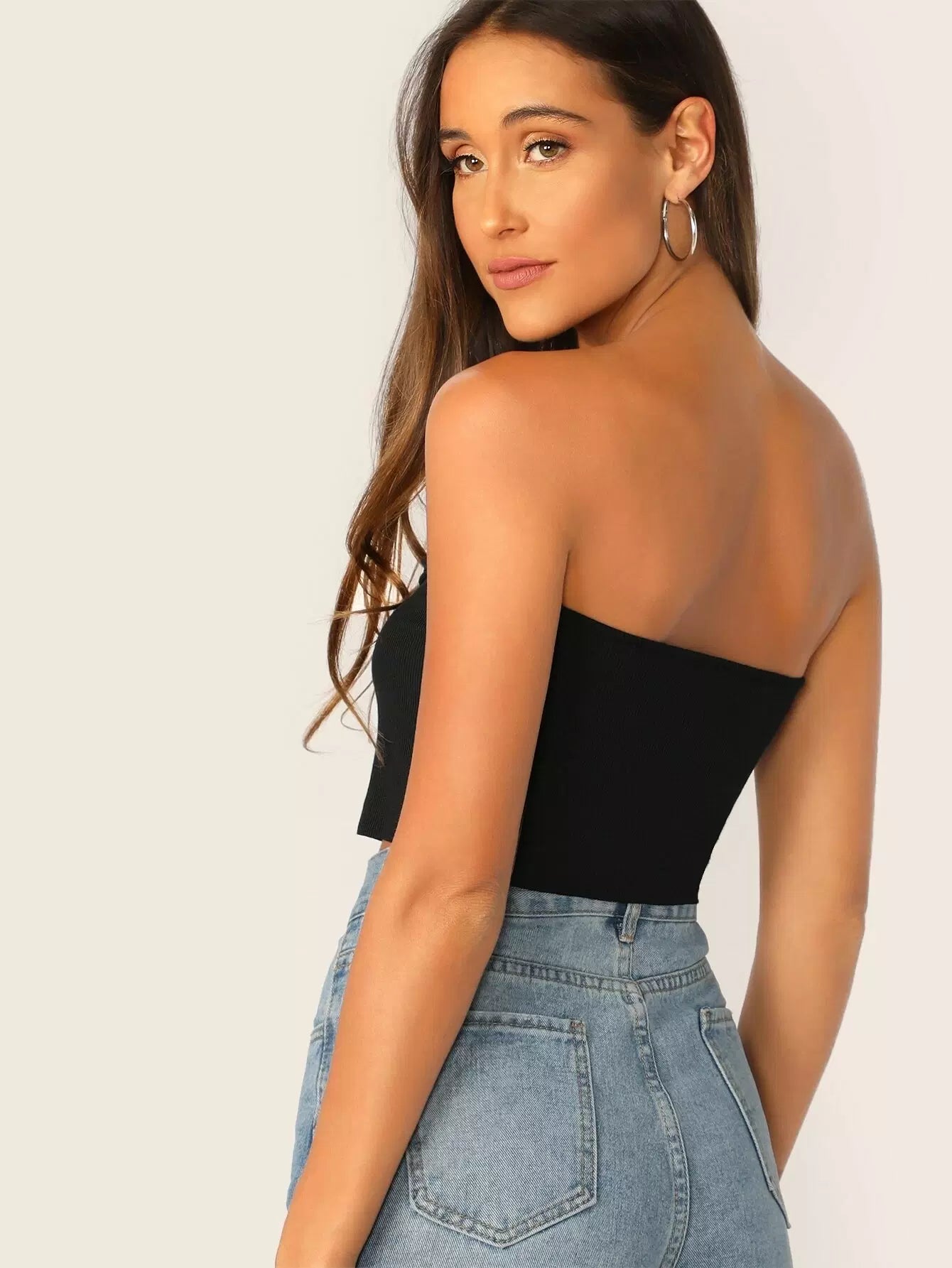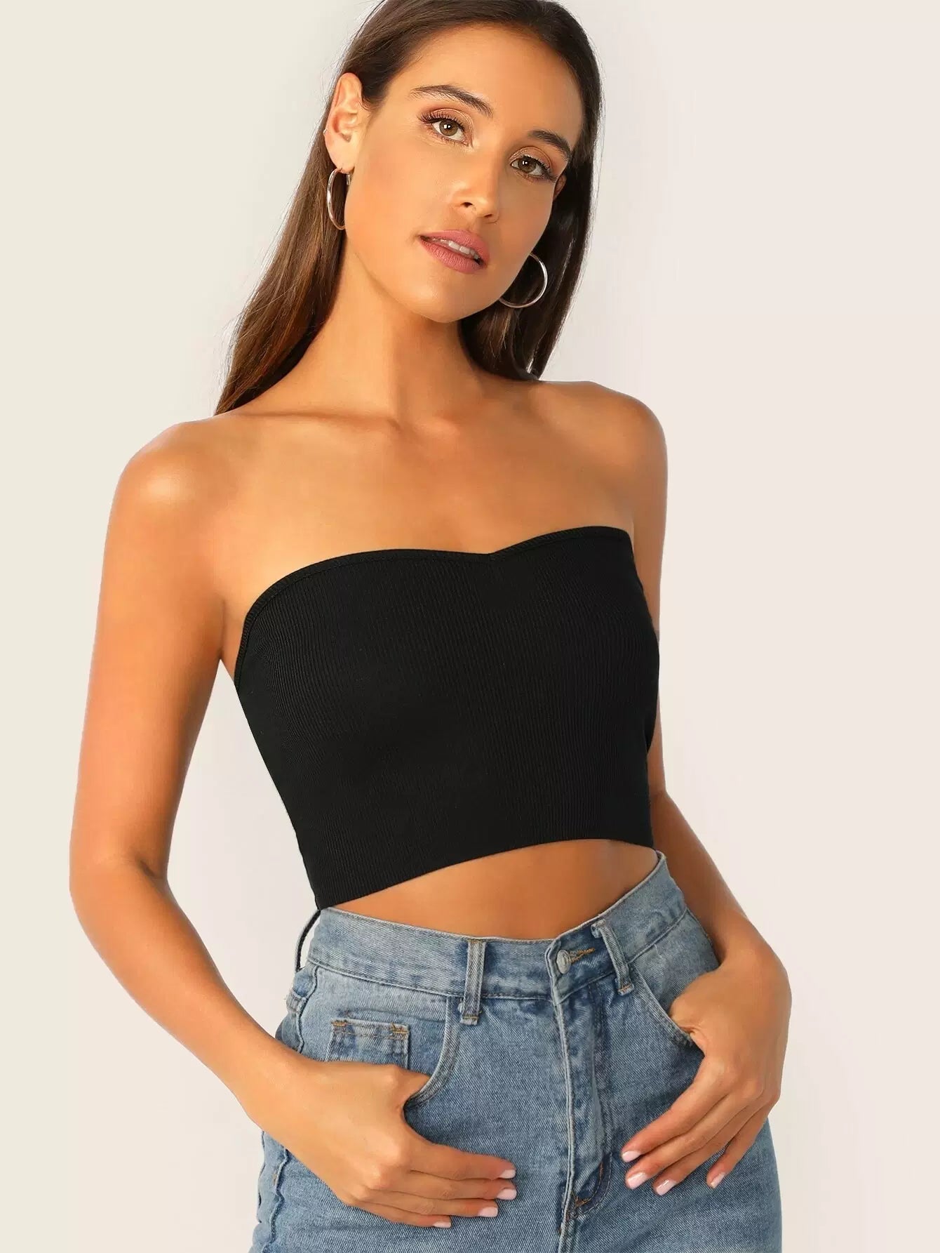 Ribbed Sweetheart Neck Bandeau