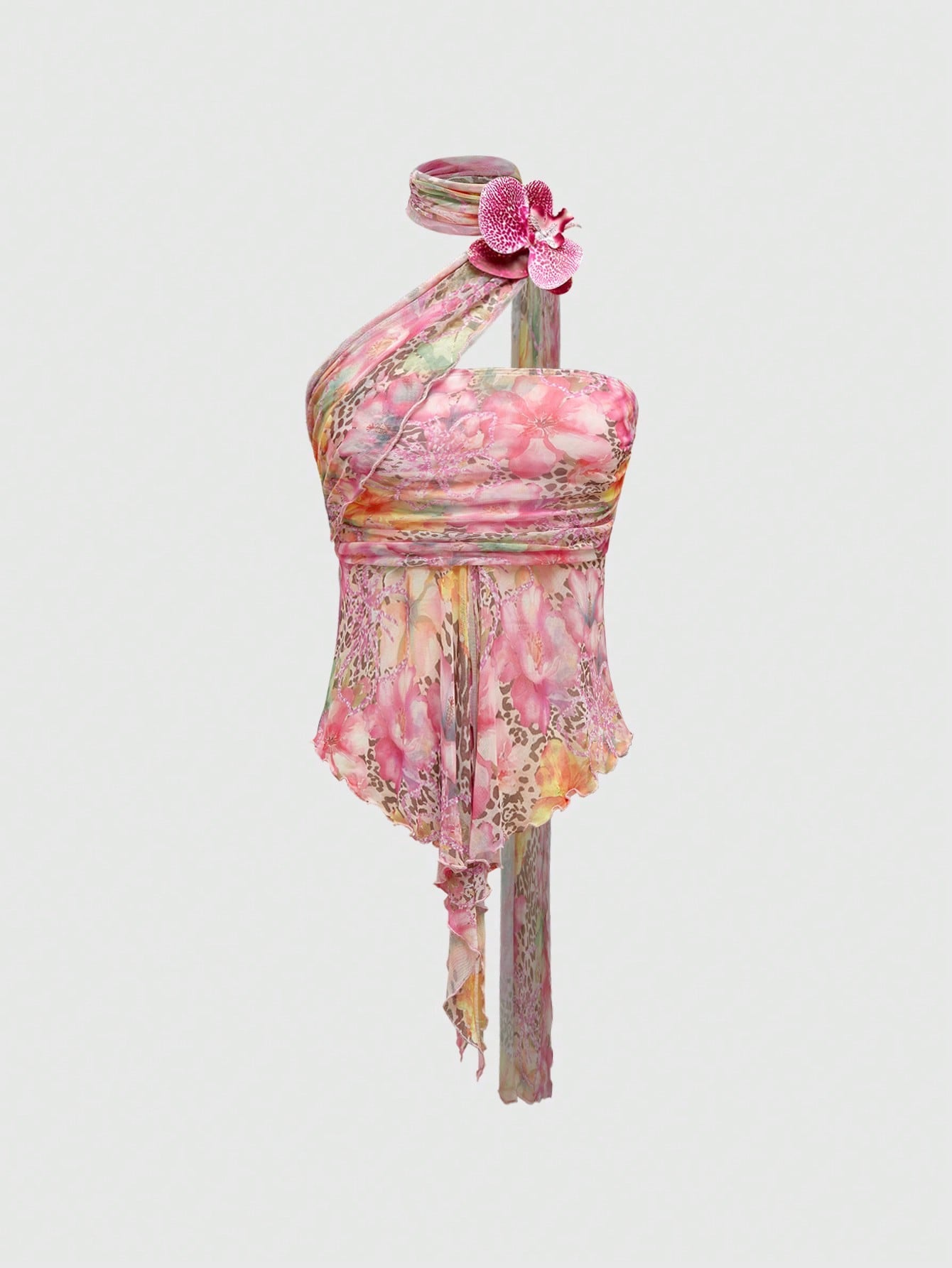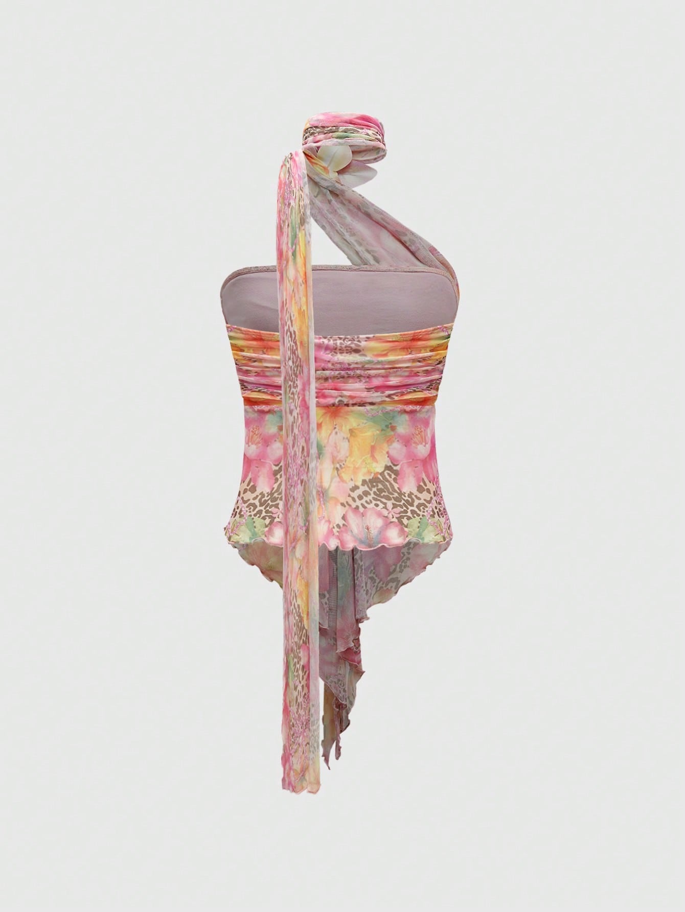 ROMWE Goth Y2K Style Pirate Sexy Cut-Out Side Ruched Removable Mesh Scarf Women Tube Top