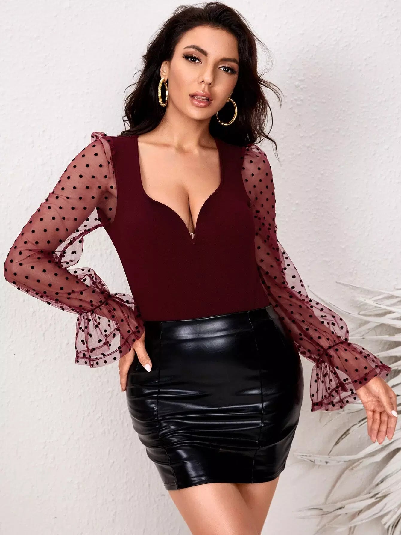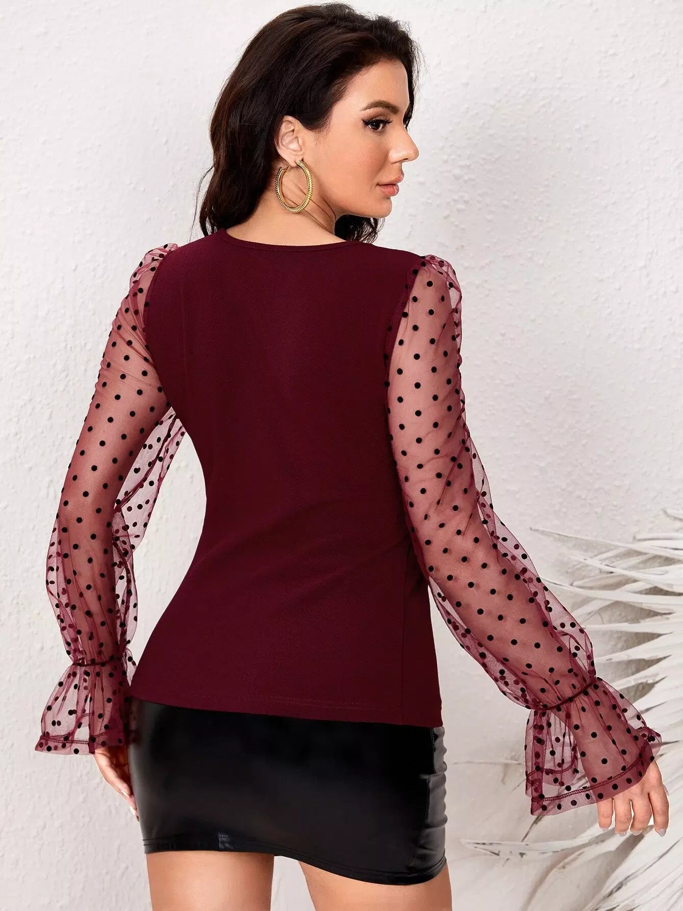 Ruffle Cuff Sheer Swiss Dot Mesh Sleeve Top