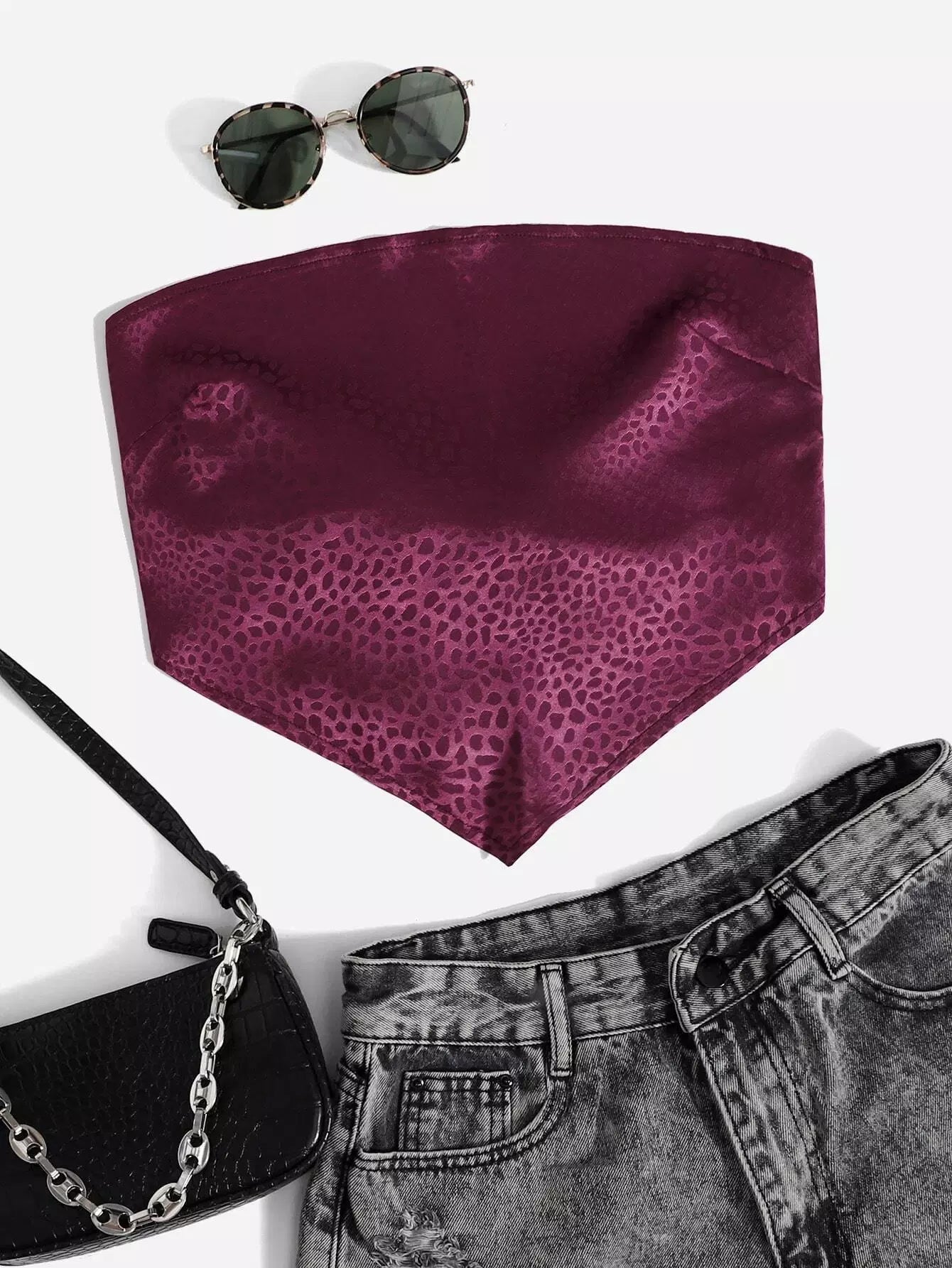 Satin Jacquard Tie Back Crop Bandana Tube Top