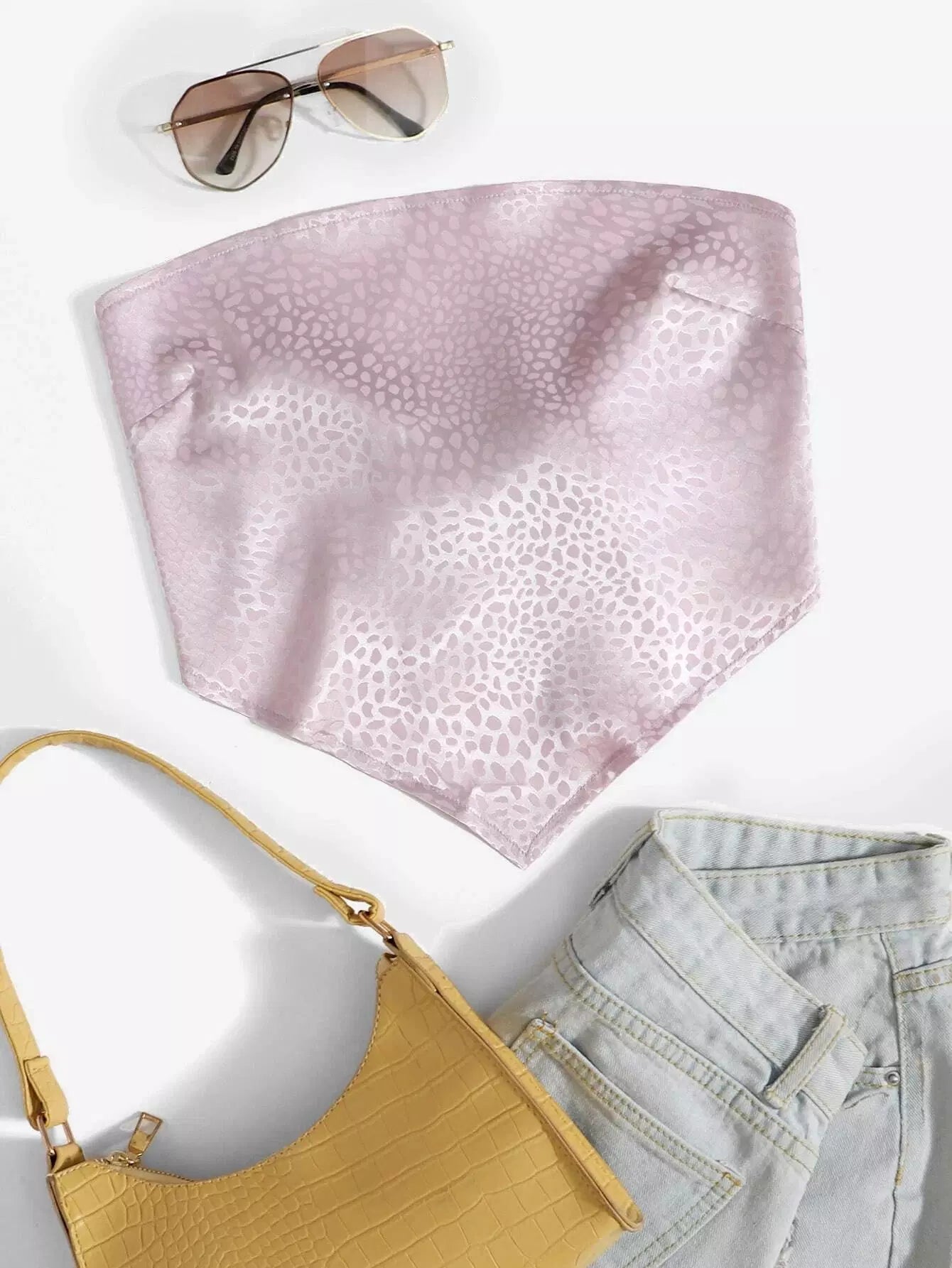 Satin Jacquard Tie Back Crop Bandana Tube Top