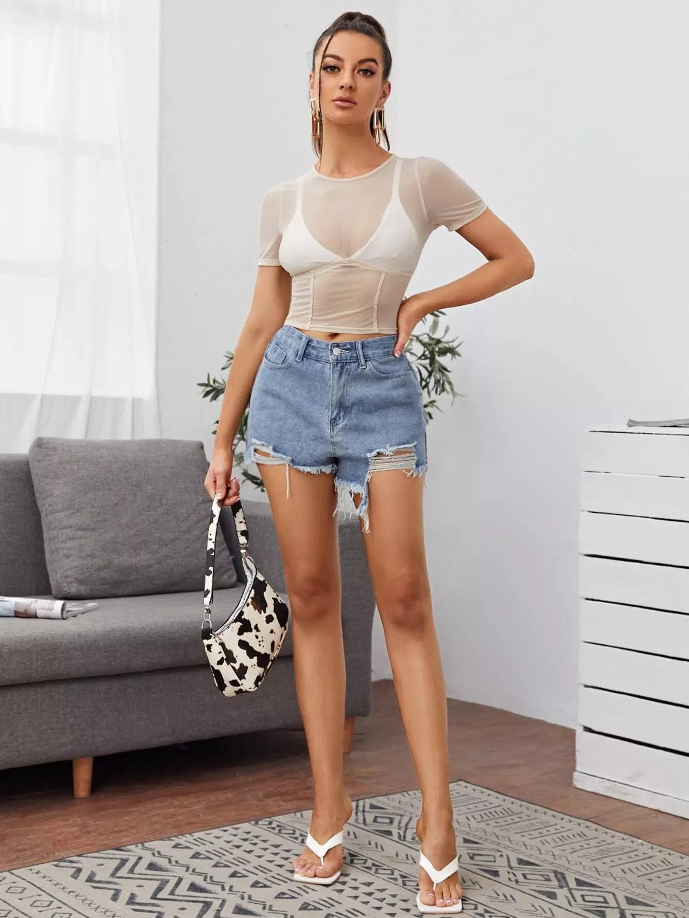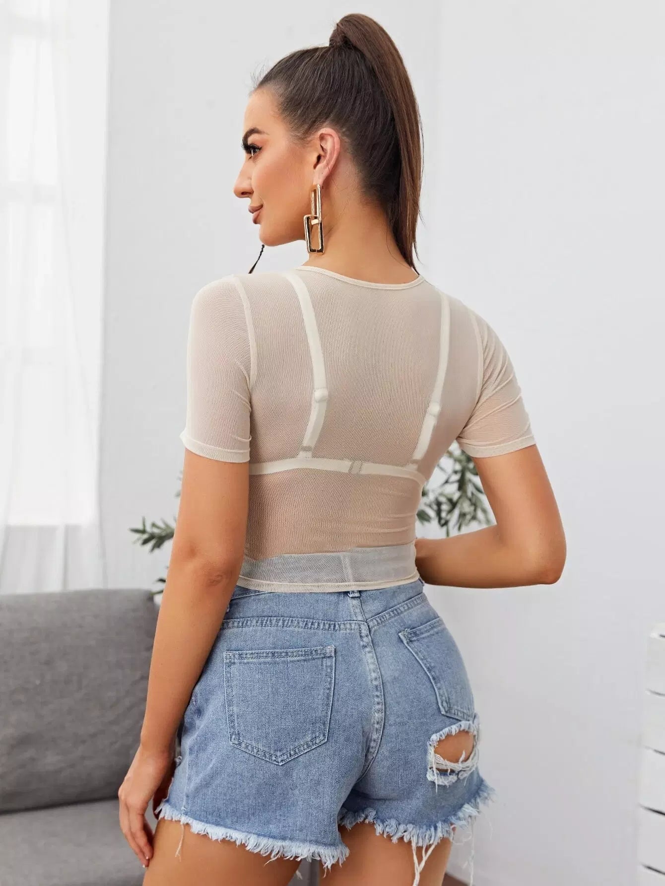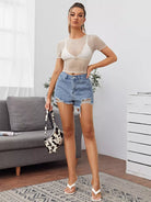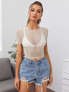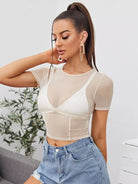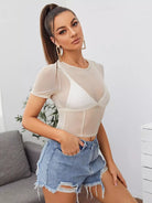 Seam Front Sheer Mesh Top Without Bra