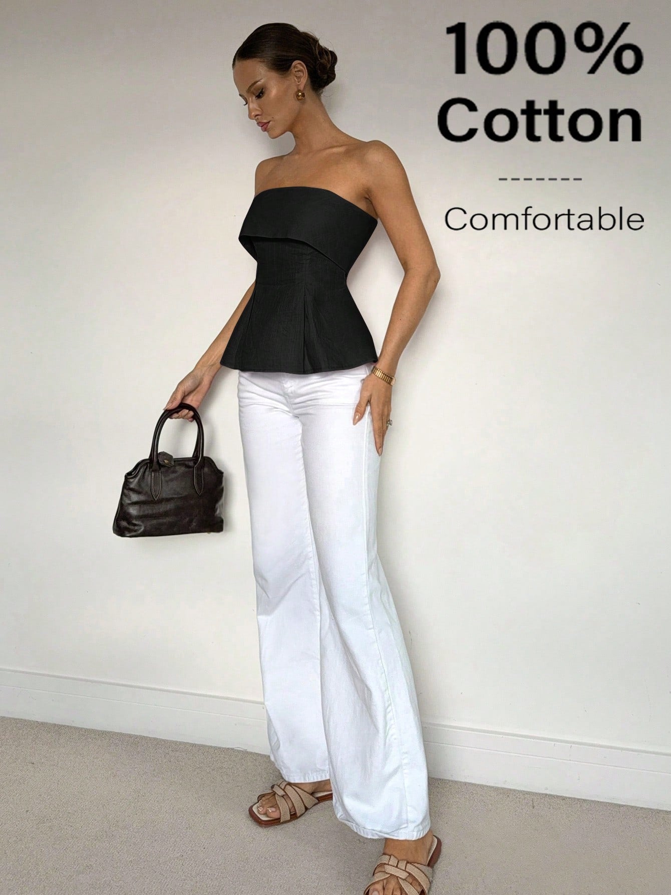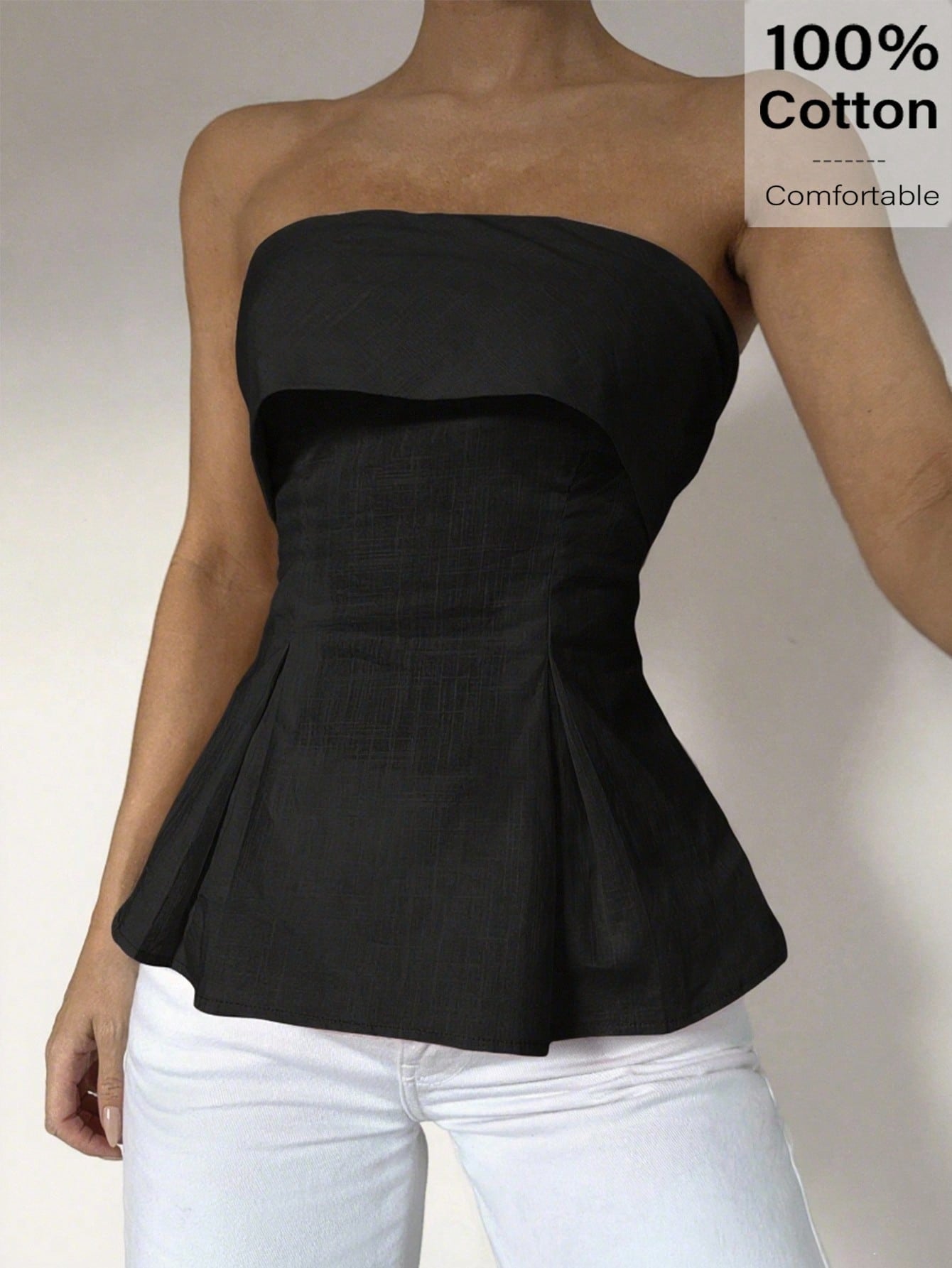 Siren Gaze Linen-Cotton Tube Top: Waist-Defining Bohemian Office Wear | Old Money Elegance Summer 2025